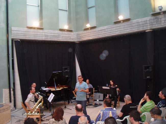 El segon concert de la vesprada estigué a càrrec del conjunt gallec Vertixen Sonora Ensemble, conjunt que segons indicava les notes al programa i per les paraules de Voro Garcia en la presentació, estan portant, mostrant i revaloritzant la música contemporània a Galícia, a més a més de fer una forta aposta per interpretar, encomanar i estrenar obres de compositors vius i en actiu. Així, començaren amb Del pie sobre el vidrio, de l’argentí S. Díez-Fischer obra estrena de Vertixen, per a piano manipulat, saxofon baríton, acordió, guitarra elèctrica i electrònica on destaca una mena de leitmotiv rítmic que s’intercala entre les diferents textures d’un marcat caràcter experimental, d’altra banda la paràfrasi del títol (vídrio) està simbolitzada per la manipulació i execució del pianista de diferents copes de vidre ubicades en el cos del piano, tot plegat el conjunt demostrà només començar el treball i ofici que aglutinen i la compenetració interpretativa oferint una primera obra experimental de bona factura i ben lligada, estructuralment amb eixe recognoscible leitmotiv rítmic juntament amb els diferents efectes de l’arc fregant les copes dins del piano i l’electrònica ben controlada i oportuna. Tot seguit s’escoltà Senderos (Esplorazione IV) de l’italià M. Longo compositor avesat a la composició per a videojocs i cinema ens oferí una obra farcida de textures sonores on allò que destaca eren els bufs tant del saxofon com de l’acordió, aquest darrer produint una motiu reiterat en la dinàmica que exercia d’eix entre les textures sonores, l’obra en general té diverses direccionalitats, és a dir per a acumulació de sons va creant tensions (representades per la creixent activitat del volum sonor) on destaca el nexe representat per la indicació de dinàmica (decrescendo en glissando), que una vegada arribat al clímax sembla voler exhaurir-se. Allò més ortodox, les escales descendents finals del piano, sembla afegir-li sabor sonor entre tanta textura sonora la qual es reitera, i per moments demana mes activitat o no tanta repetició, més velocitat d’accions.