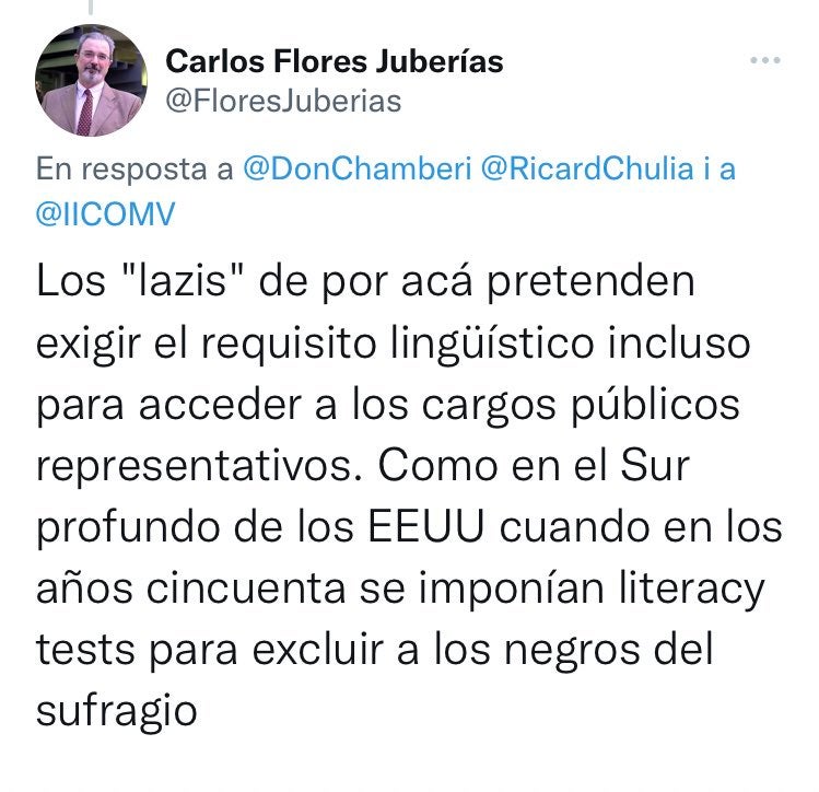 Tot quan Carlos Flores Juberías no s’ha estat de queixar-se, amb formes bastant qüestionables, del requisit lingüístic exigit per una part de la societat valenciana per tal que els aspirants puguen accedir a la funció pública.