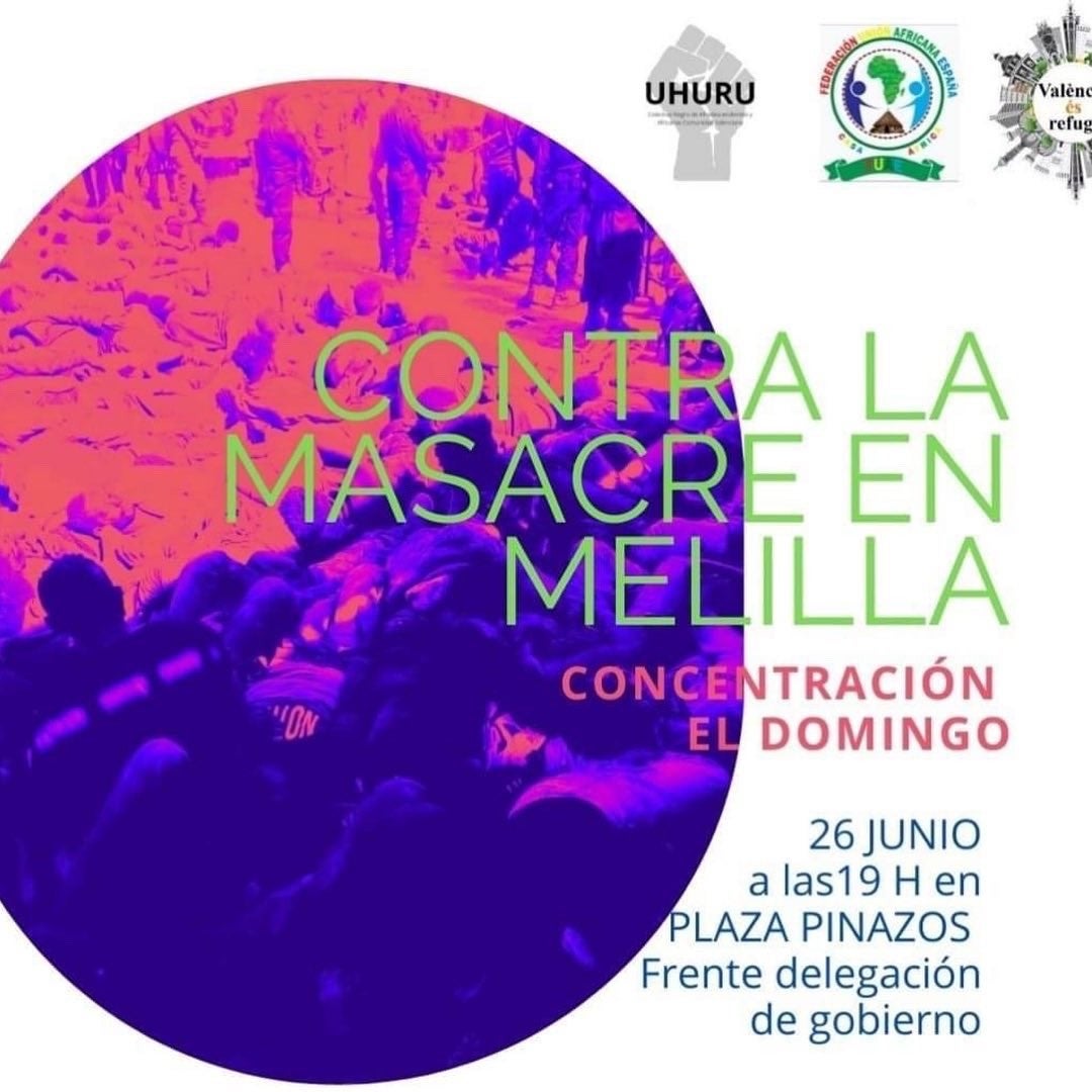 Diverses organitzacions han convocat a València aquest diumenge una concentració de protesta contra la «massacre» ocorreguda en l’intent d’entrada massiva a Melilla d’aquest divendres. Tindrà lloc a la plaça dels Pinazo de València, enfront de la Delegació del govern espanyol, a les 19 h.