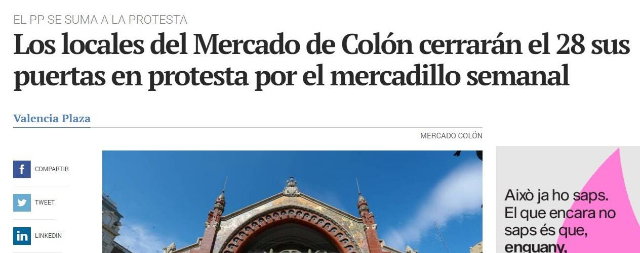 Doncs davant d’aquesta millora objectiva per als seus interessos, Confemercats –Federació de Mercats Tradicionals d’Abastos de la Comunitat Valenciana- ha interposat una denúncia a Joan Ribó. I Confecomerç, que agrupa les entitats de xicotet comerç del País Valencià, s’ha sumat al comunicat de protesta per la posada en marxa d’aquests mercats.