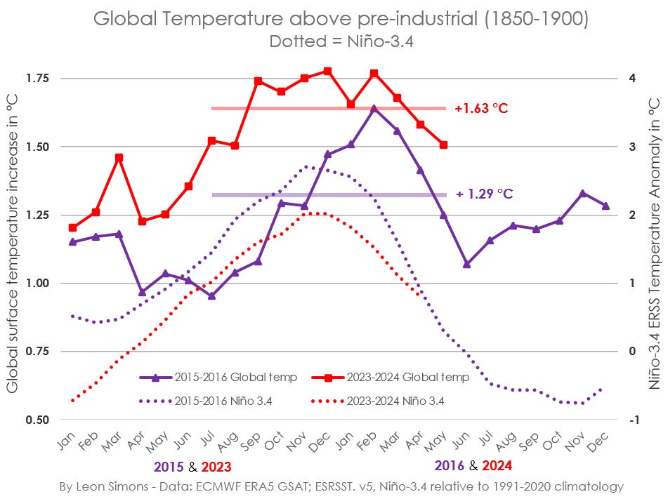 La nostra única –i molt xicoteta- esperança, el clau roent, és que aquest increment sobtat té relació, també, amb el fenomen d’El Niño i que quan aquest acabe en els pròxims tres o quatre anys, el planeta es refrede lleugerament. Açò, és clar, si no es «trenca» res més en el complex teixit de fenòmens entrellaçats que conformen el clima del planeta.