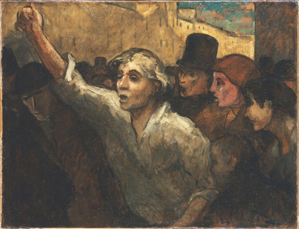 Insisteix Arendt, en aquest assaig de teoria política cabdal, en el fet que l’esclat de la major part d’insurreccions ha sorprès als propis partits i grups sediciosos en igual mesura que a la resta, i que poques vegades aquest inici pot atribuir-se a les seues activitats. I cita Tocqueville per la seua exactitud, comprovada en diverses avinenteses, quan afirma que el 1848 la monarquia francesa va caure «abans que li arribaren els colps dels vencedors, que es van desconcertar tant del seu triomf com els vençuts de la seua derrota». El menyspreu envers les institucions i els representants públics surava en l’ambient d’aquell període; només cal fer una ullada a bona part de l’obra Daumier per veure amb claredat quina era l’opinió majoritària sobre els governants i el funcionament de la justícia. No ha estat l’única vegada que aquest sentiment s’ha escampat i ha encès el ble quan ningú no ho esperava.