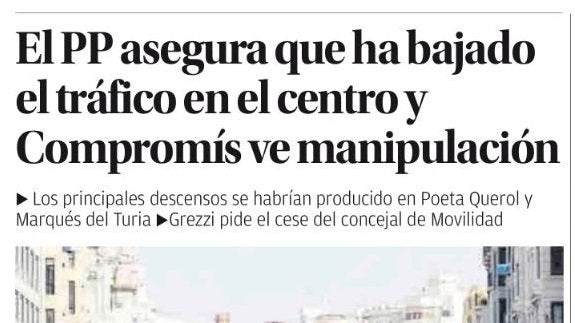 Però tot i açò, gairebé ningú va voler fer aquesta feina. Els principals diaris no van enfadar-se amb Carbonell per haver-los mentit, sinó que van mantenir la seua versió en els titulars, assegurant que el «trànsit s’havia reduït» i limitant-se a incloure, en el millor dels casos, un «segons l’Ajuntament», per allò de guardar-se les esquenes. Algun, fins i tot, va incloure la versió de Compromís en la notícia. Ja sabeu: «Tal diu que plou i que Pasqual diu que no» i que siga el lector, si vol, té temps o coneixements, el qui s’encarregue d’obrir la finestra i mirar si plou.