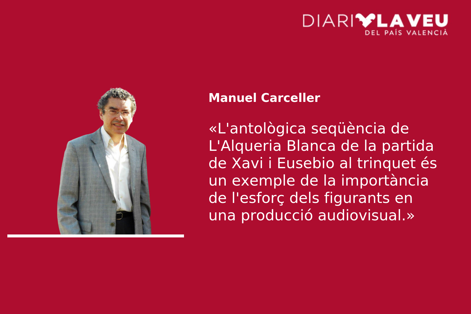 L’antològica seqüència de L’Alqueria Blanca de la partida de Xavi i Eusebio al trinquet és un clar exemple de la importància de l’esforç dels figurants en una producció audiovisual. Els hòmens allí presents, semblant ser el públic selecte d’una partida del 1971, estàvem especialment actius, motivats i tot. Aquell moment demostra que els figurants d’una producció audiovisual podem estar molt a prop de l’actuació. No som el fons del paisatge, no som un ramat d’animals, tal com es conta que va dir dels actors Alfred Hitchcock, sinó que formem part de la imatge de la veritat que tota gran producció audiovisual genera.