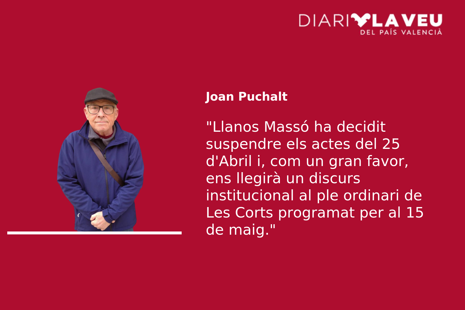Carratalà recorda que “l’any passat la ultradretana Llanos Massó va protagonitzar la seua primera diada del 25 d’Abril amb un discurs en què va insistir fonamentalment en la ‘defensa d’Espanya'”. Segons la presidenta de la cambra, el 25 d’abril del 1707, dia de la derrota d’Almansa, hi va haver un esdeveniment que “és història, i no requereix més memòria que el record d’uns fets que realment van ocórrer i amb conseqüències que han de ser analitzades pels historiadors, no pels polítics” va dir. En un discurs en castellà, Massó va parlar sobre el “paper com a legisladors” i va apel·lar al “respecte” cap a les institucions polítiques per a “fomentar la concòrdia, l’harmonia i el compromís amb els valencians, sempre des del ferm respecte a la llei i a la nostra pàtria comuna, Espanya”.