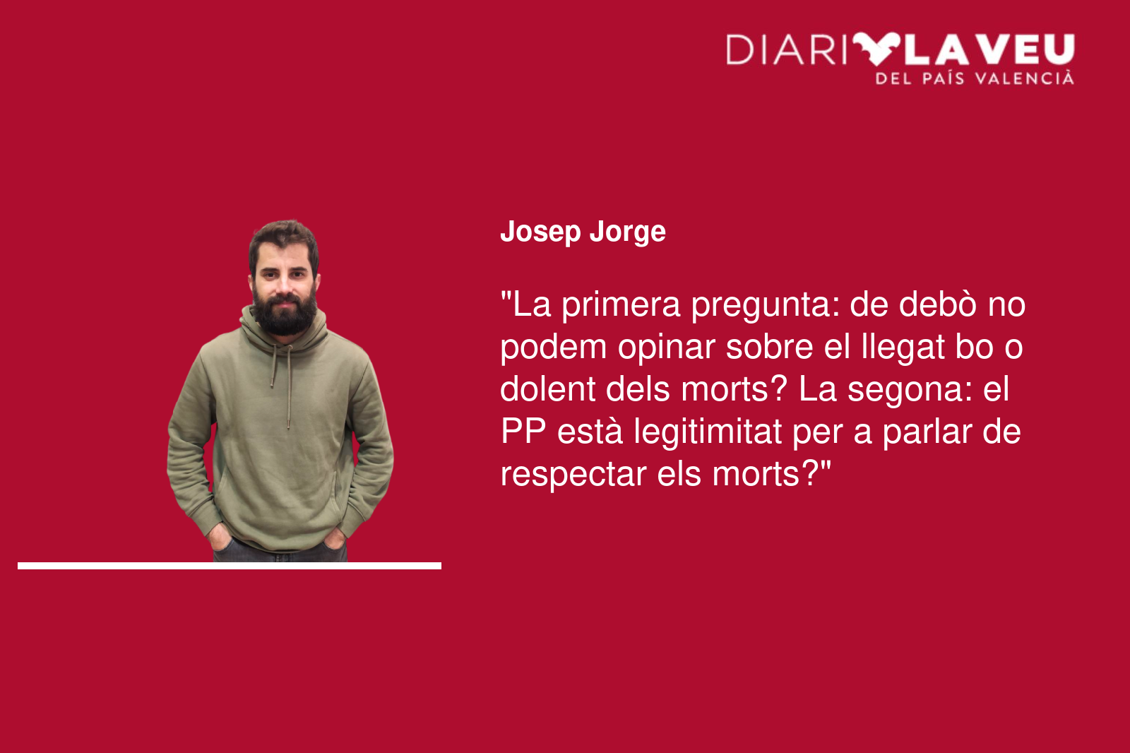 Estos últims dies, arran de les eleccions autonòmiques aragoneses, el Partit Popular es va fixar en les paraules del socialista Óscar López, qui va tractar de vincular la caiguda del PSOE d’Aragó al paper de Javier Lambán, quan va estar en l’oposició abans de deixar l’acta per malaltia. “En lugar de hacer oposición a Azcón, se dedicó a hacer otra cosa, por cierto, muchas veces con argumentos que eran de la derecha”, va dir López. Segons el PP, i algun que altre pes pesant del PSOE, com Page, va exigir-li que es retractara. López, però, va eludir justificar-se. Després de tota la polèmica, em faig dos preguntes. La primera: de debò no podem opinar sobre el llegat bo o dolent dels morts? La segona: el PP està legitimitat per a parlar de respectar els morts?