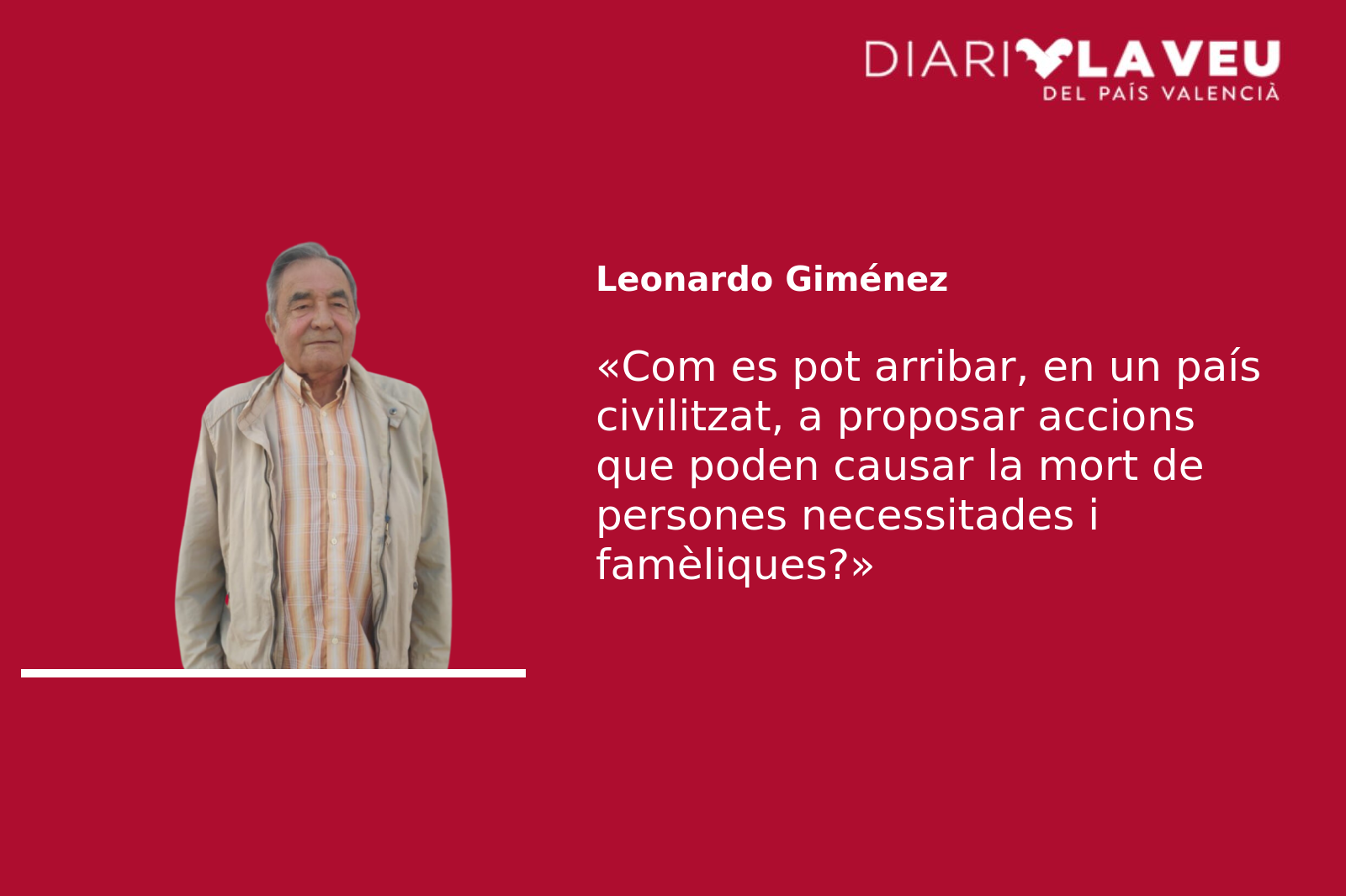 Com es pot arribar, en un país civilitzat, a proposar accions que poden causar la mort de persones necessitades i famèliques? Perquè una cosa és dir eixes barbaritats en la barra o en una taulada de bar o taverna, que mai s’han de pronunciar, ni amb algunes copes de més, ni seré, però una altra és escriure-ho i publicar-ho, que no és un acte que es fa sense pensar. Em pareix una acció cruel que caldria qualificar de delicte, per l’efecte propagandístic i inductiu que té.