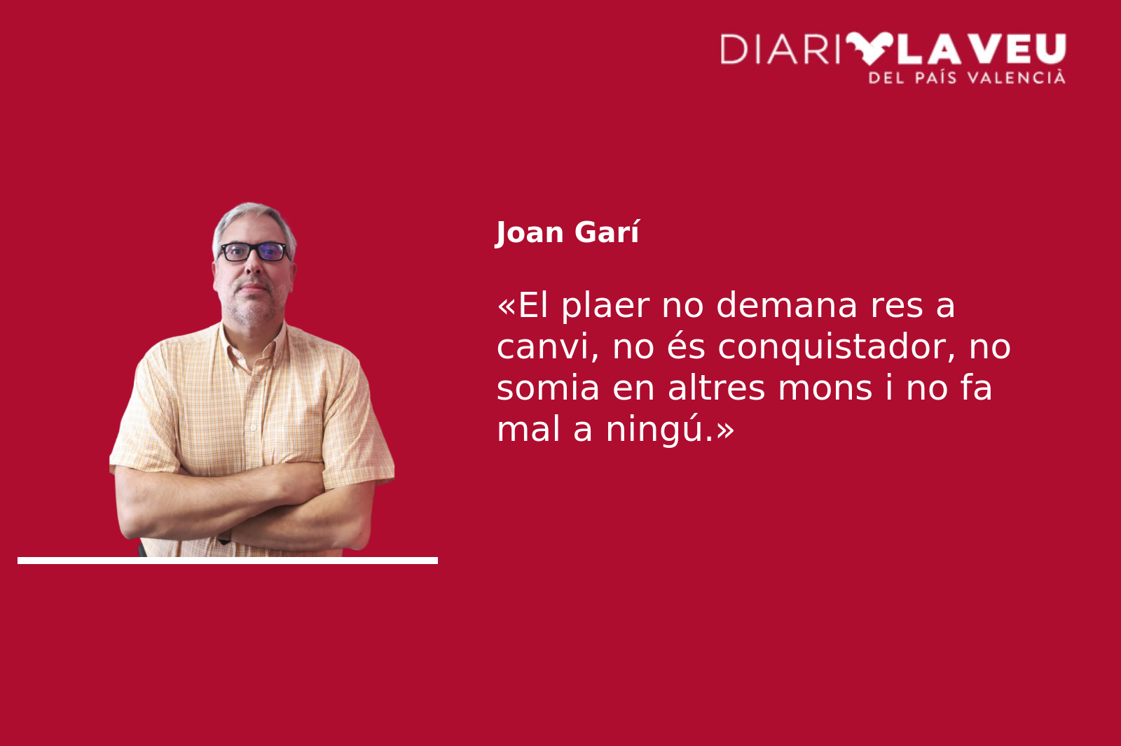 Hi coincidisc plenament. Això dels valors «eternos» em sona un poc a filosofia escolàstica, a lectures místiques mal digerides, a armadures i elms que oculten una pistola o un virus mortal. El plaer, en canvi, no demana res a canvi, no és conquistador, no somia en altres mons i no fa mal a ningú. El plaer s’escriu sempre en minúscula i és tan fugisser –i imprescindible- com unes gotes d’aigua de pluja sobre el dors d’una mà.