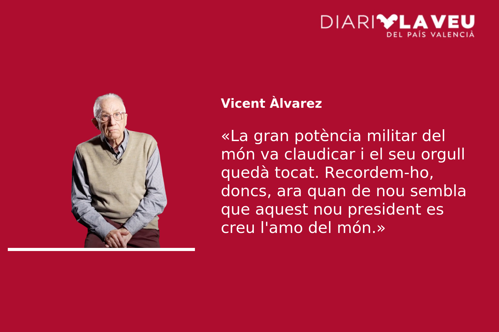 Com veieu, la gran potència militar del món va claudicar i el seu orgull i fanfarroneria quedaren tocats. Recordem-ho, doncs, ara quan de nou sembla que aquest nou president i els seus acòlits es creuen els amos del món.