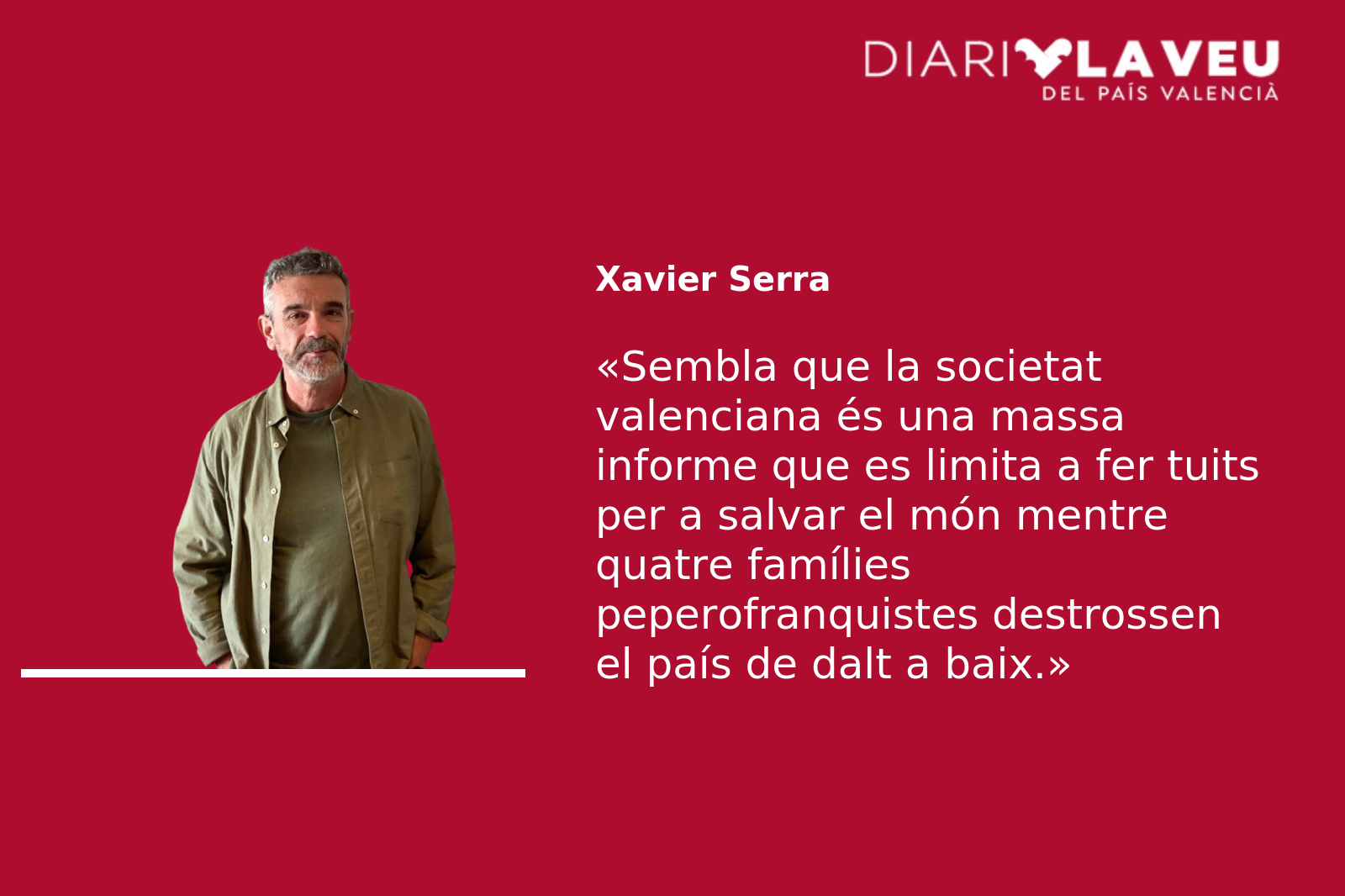 Al pas que anem, sembla que la societat valenciana és una massa informe que es limita a fer tuits i retuits per a salvar el món mentre quatre famílies peperofranquistes destrossen el país de dalt a baix. A Compromís, hi ha ara mateix un merder tan gran que no s’atreveixen ni tan sols a fer un congrés i van ajornant una vegada i una altra la data fatídica de dir-se a la cara: «Hem perdut perquè ho hem fet molt malament, però si continuen manant Marzà, Micó i els que ens han portat al desastre ho podem fer encara pitjor». En el Psoe valencià pot acabar manant algú que siga tan paranoicoespanyol com Mazón. ¿No tindrà el Psoe ni la vergonya de defensar el llegat de Ciprià Císcar? Dels estiracordetes de Sumar no cal ni parlar-ne, perquè l’únic que faran serà parlar en castellà i acabar de desmuntar Compromís.