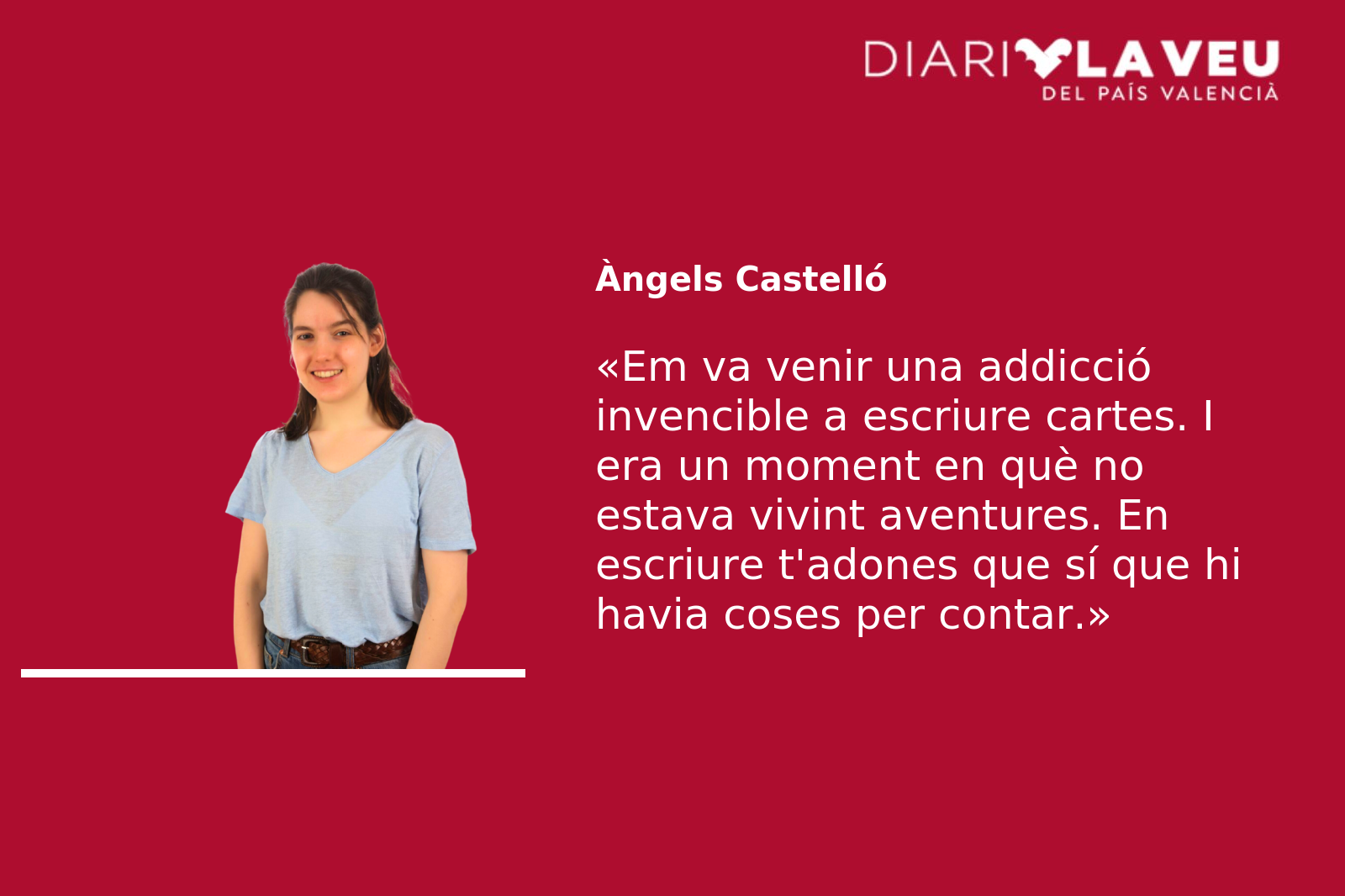 Em va venir una addicció invencible a escriure cartes. I era un moment en què no estava vivint aventures. En escriure t’adones que sí que hi havia coses per contar. Els fulls s’omplien i el cervell també, amb paraules que es descartaven i amb possibles frases i llegint el que anava quedant escrit. De vegades em quedava parada i veia que tenia les mans brutes de tinta, mirava si havien quedat rectes les línies, més o menys, i mirava els fulls, els sobres i els segells.