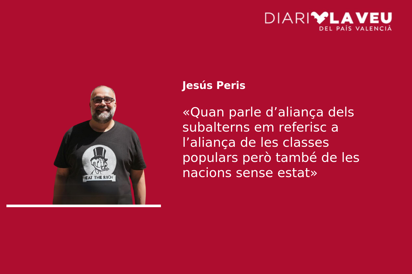 Ací hi ha un repte interessant per als anys que venen. I quan parle d’aliança dels subalterns em referisc a l’aliança de les classes populars, però també de les nacions sense estat. Les conxorxes estatals ja sabem on han conduït: a la construcció d’una implacable màquina neoliberal immanent i autònoma trituradora de persones i de barris. Si hi ha una altra Europa possible, com si hi ha una altra Espanya possible, l’han de fer els pobles, d’igual a igual, amb sobirania i complicitats.