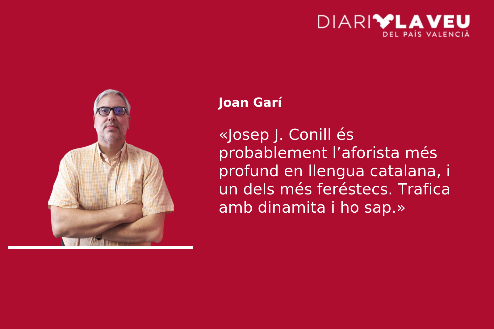 Josep J. Conill és probablement l’aforista més profund en llengua catalana, i un dels més feréstecs. Trafica amb dinamita i ho sap. Les seues màximes ixen a raig, com una metralladora, amb un peu en la filosofia i un altre en la poesia. Ell es considera un sociòleg (o, en el seu idiolecte, un «desil·lusionista»), però el que fa és una mena d’assagisme de la crueltat (un poc com el teatre que preconitzava Antonin Artaud: «Potser el món és un gran teatre, però l’obra que s’hi representa no passa de ser una vulgar estafa piramidal», diu Conill).