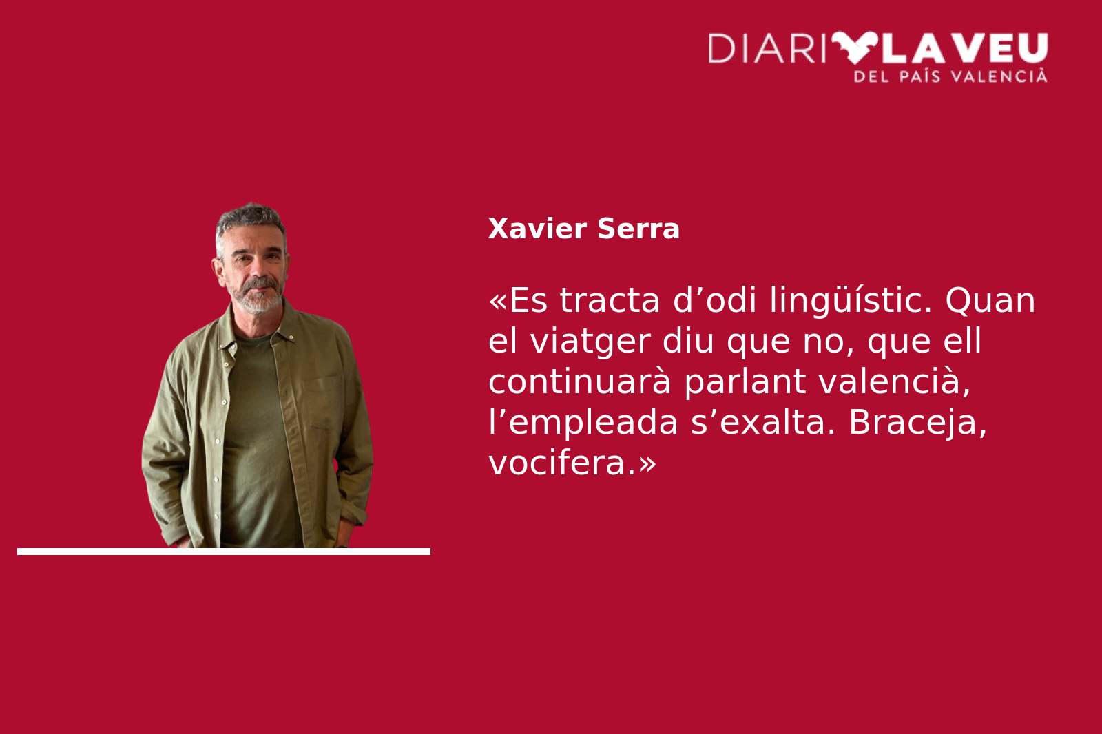 Però hi ha una cosa que l’inquieta, ara que s’ha parat a pensar-ho. L’hora. Si l’incident s’ha produït al migdia, això vol dir que els valencianoparlants de Xàtiva que han anat abans que ell a comprar un bitllet a la taquilla han parlat d’entrada en castellà, per si de cas. O que, submisos, han canviat de llengua al primer «noentiendo», a la primera cella arquejada, al primer nas arrufat. Ells diran que ho fan «per educació», perquè saben les dues llengües. Però és per por, evidentment. Por a les males cares, por al conflicte. Per por a l’odi.