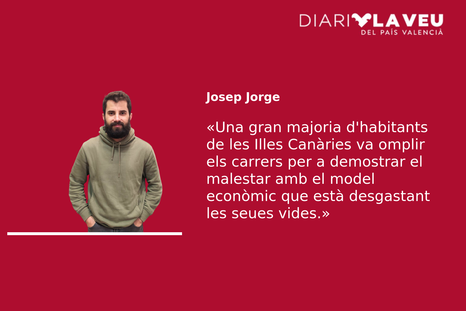 El passat cap de setmana, una gran majoria d’habitants de les huit illes que conformen l’arxipèlag canari va omplir els carrers per a demostrar el malestar amb el model econòmic que està desgastant les seues vides: turisme massiu, gentrificació i projectes que destrossen el medi natural. Un model que s’ha anat consolidant en les illes amb el vistiplau del govern autonòmic i central. Açò ha comportat uns problemes socials preocupants, perquè el 35% de la població es troba en risc de pobresa, i això que són líders en turisme.