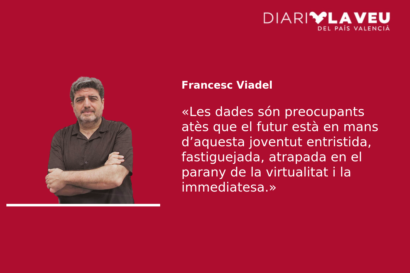 Les dades són preocupants atès que el futur de les nostres societats està en mans d’aquesta joventut entristida, fastiguejada, atrapada en el parany de la virtualitat i de la immediatesa.
