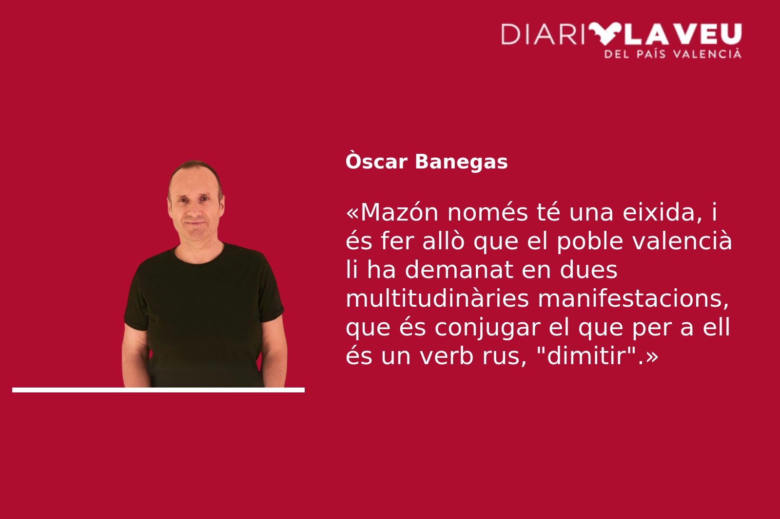 En definitiva, l’inquilí del Palau de Benicarló de València només té una eixida, i és fer allò que el poble valencià li ha demanat ja a crits als carrers en dues multitudinàries manifestacions, que és conjugar el que per a ell és un verb rus, dimitir. Cadascú té les seues competències, i en matèria d’emergències és cada autonomia la que comanda les seues catàstrofes. En aquests casos, la clau sempre és avançar-se, anticipar-se, i està demostrat que qualsevol mesura presa de manera preventiva és efectiva, cosa que no van fer els nostres governants maldestres i que, evidentment, podria haver salvat moltes vides. Per això, més que parlar de la gestió d’un desastre, assistim des de fa més de quaranta-cinc dies a un desastre de gestió. Fins quan el tindrem apoltronat i escarxofat en el tron? El temps ho dirà. Torres més altes han caigut.