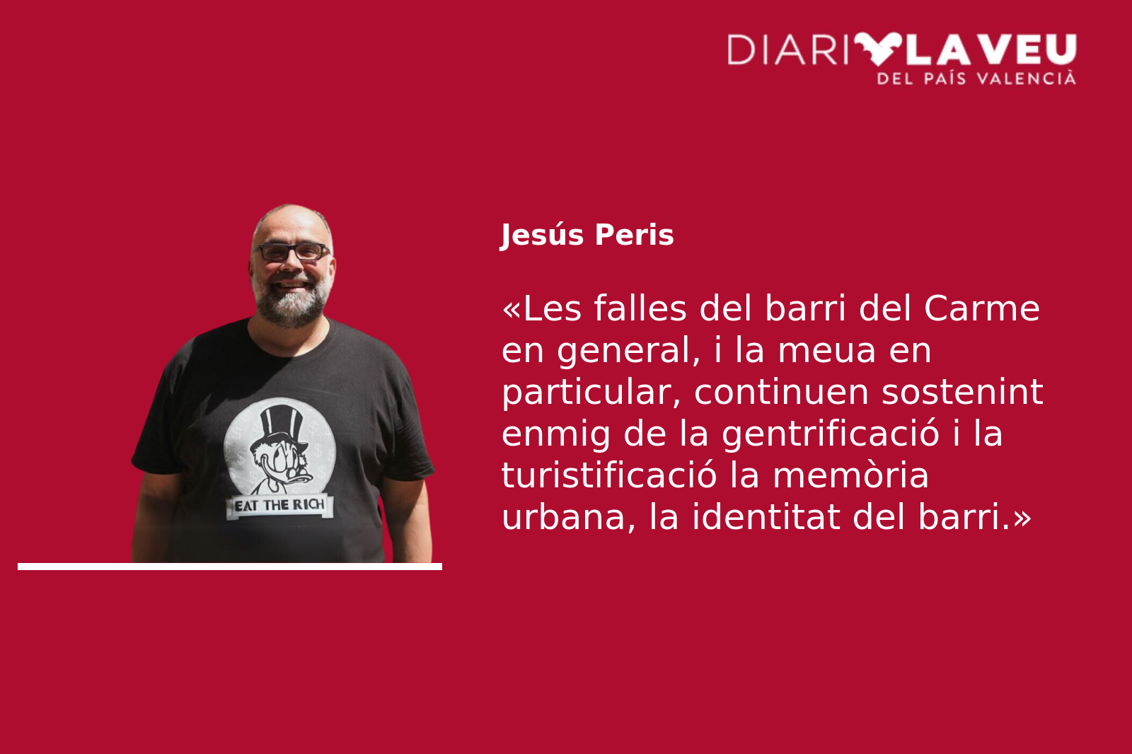 Tenia ganes de contar-vos aquesta xicoteta història perquè m’abellia molt compartir-la amb vosaltres. Perquè va ser molt bonic i molt emocionant; perquè les falles del barri del Carme en general, i la meua en particular, continuen sostenint enmig de la gentrificació i la turistificació la memòria urbana, la identitat del barri; perquè continuen fent servir els carrers per celebracions que no han perdut el seu profund sentit comunitari; perquè fan cultura popular i cultura valenciana, sense pretensions, per al gaudi propi, és a dir cultura popular autèntica, no esdevinguda emblema for export per a turistes i expats.