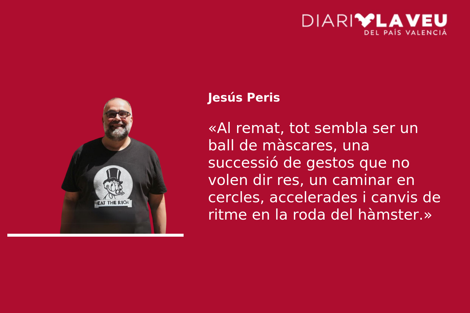 I aleshores és quan reconec que m’he perdut, i que potser ens enganyàrem en voler veure estratègia on només hi havia una fugida cap endavant més o menys improvisada. En qualsevol cas, que tota l’escenografia populista, amb gent fins i tot ballant pels carrers «Pedro», de Raffaela Carrà, s’haja quedat en un simulacre, potser pot ser llegit com un altre pas cap al desgast d’un sistema atrapat en la seua lògica i fins i tot d’un PSOE més atrapat en el seu rol de sostenidor de la monarquia del 78 del que em pensava en escriure l’article de la setmana passada. Al remat, tot sembla ser un ball de màscares, una successió de gestos que no volen dir res, un caminar en cercles, accelerades i canvis de ritme en la roda del hàmster, perquè el sistema tal com està dissenyat no pot col·lapsar, no pot ésser desbordat, no pot ésser transformat en profunditat. La condició de possibilitat per a ser president del govern és, com cantaven las Manos de Filippi en una cançó argentina dels anys 90, ser “el tipo que mantenga más tranquila a nuestra gente”. No mantindre tranquil·la a eixa gent implica l’ostracisme, la destrucció de la imatge pública, el lawfare, la presó, l’exili…