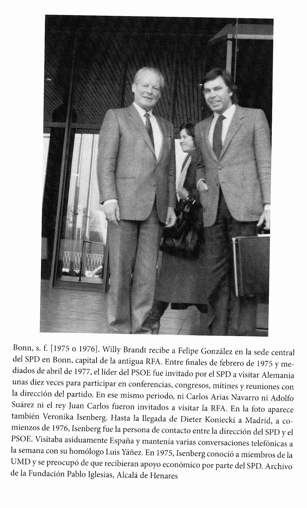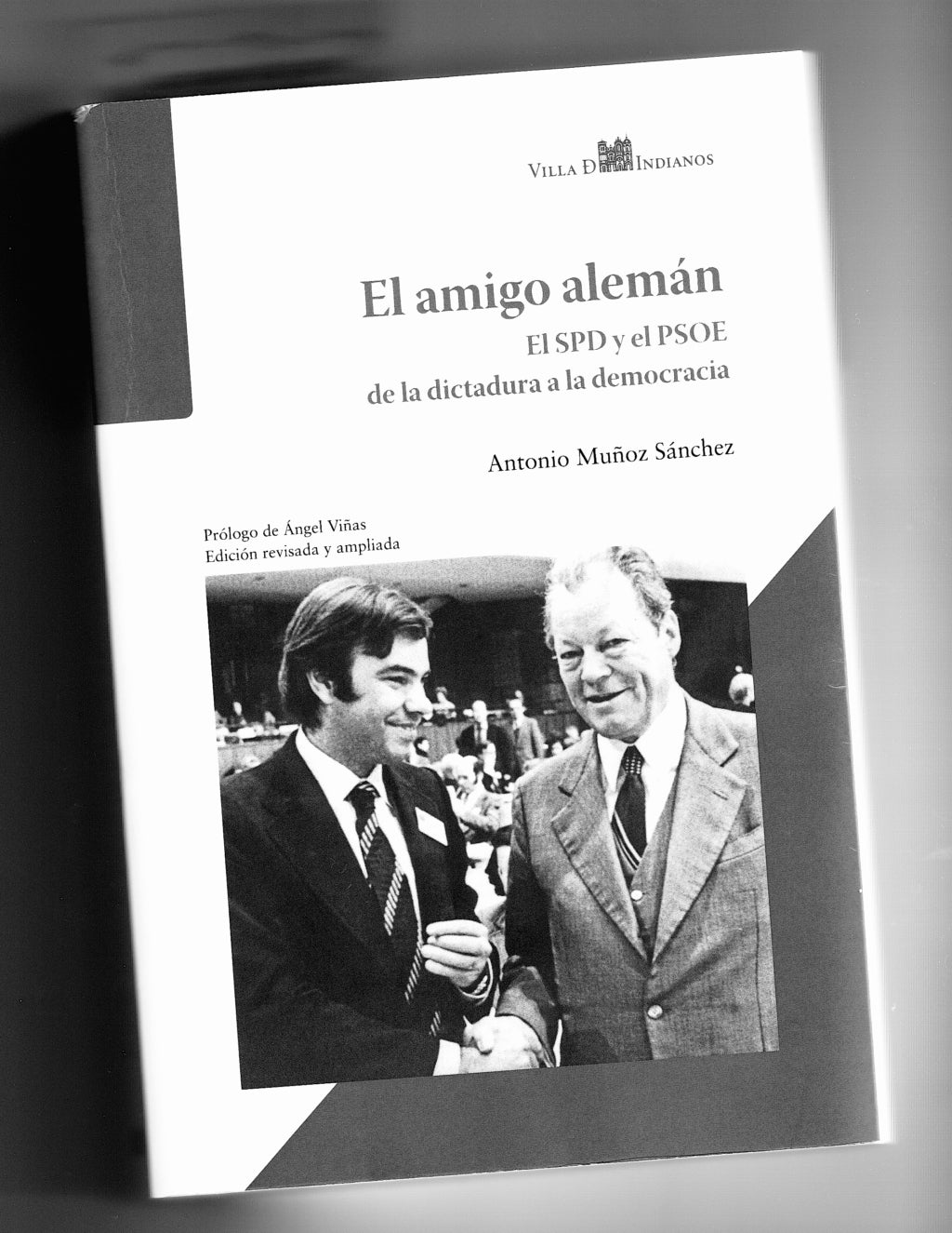 En sabem prou més, ja que d’això en parla un llibre recentment publicat. El cas és que abans de la mort del dictador, la socialdemocràcia alemanya va encetar una ajuda decisiva per ressuscitar un partit aferrat al passat amb minsa presència a l’interior, com era el PSOE. D’aquest tema se n’ocupa el llibre El amigo alemán, del professor Antonio Muñoz Sánchez, en una reedició que amplia l’original. El llibre ens ofereix moltes dades i proves irrefutables de l’ajuda i intervenció de la social democràcia alemanya, sense la qual la Transició i la situació posterior no serien les mateixes. L’autor ens facilita molts detalls dels arxius de destacats dirigents del partit socialdemòcrata alemany, del seu govern, de l’ambaixada i de la Fundació Ebert, que va ser l’entitat que canalitzà les grans aportacions econòmiques i les mediacions davant les autoritats franquistes.