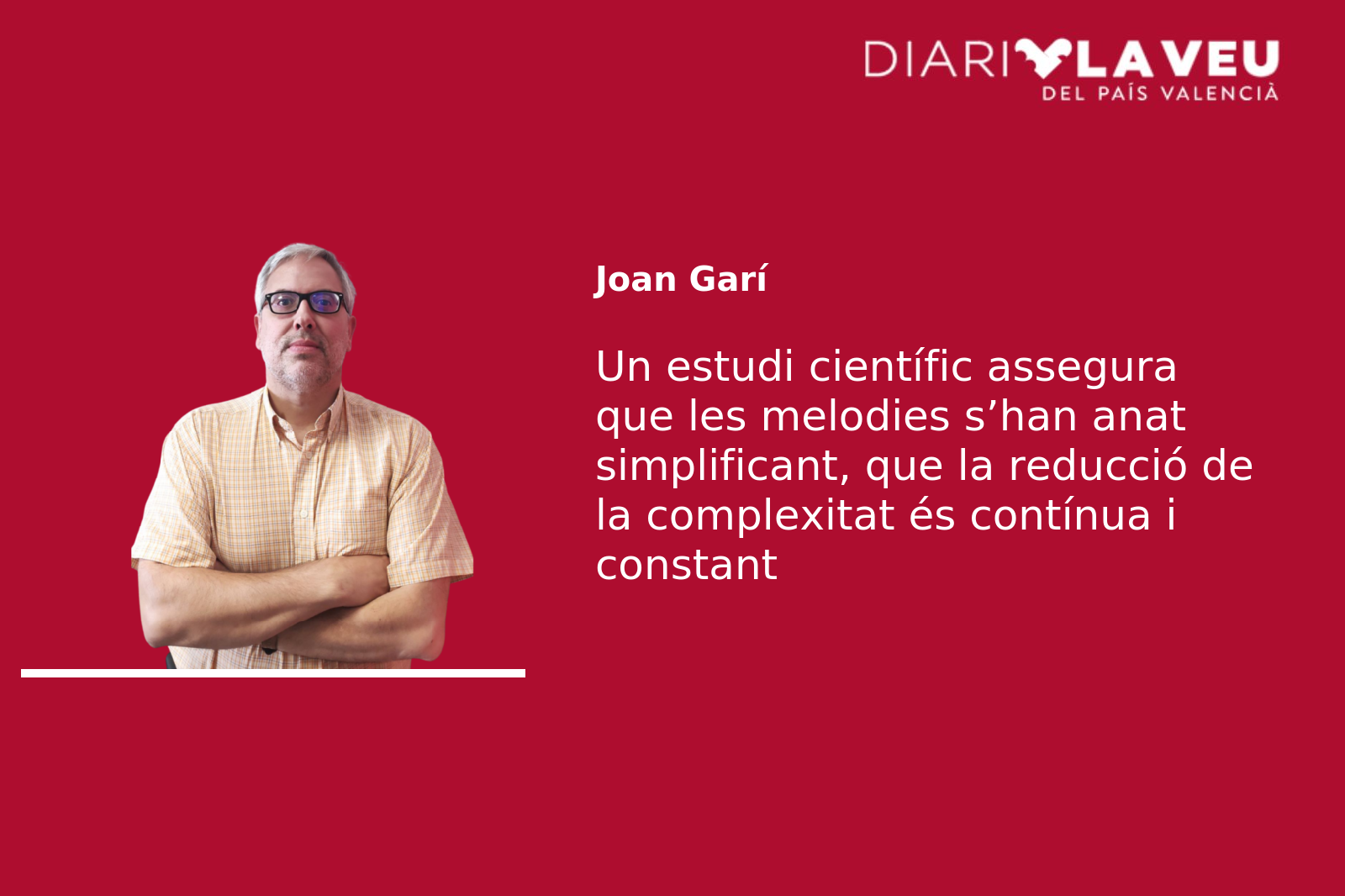 Mentre cavil·lava tot això, una breu notícia publicada l’altre dia en El País em va reconfortar i em va fornir de nova munició. El titular de la peça feia: «Els grans èxits musicals tenen melodies cada vegada més simples i repetitives». Firmava el text el periodista científic Francisco Doménech, que es feia eco d’un article de la revista Scientific Reports, a càrrec de Madeline Hamilton. Hamilton havia observat, a la seua tesi doctoral, que les melodies més populars de les últimes set dècades havien anat decreixent en complexitat. Amb l’ajuda de Marcus Pearce, aquesta investigadora va estudiar les notes i l’estructura rítmica dels cinc majors èxits de cada any, entre 1950 i 2022. El resultat de l’anàlisi? Que les melodies s’han anat simplificant, que la reducció de la complexitat és contínua i constant.