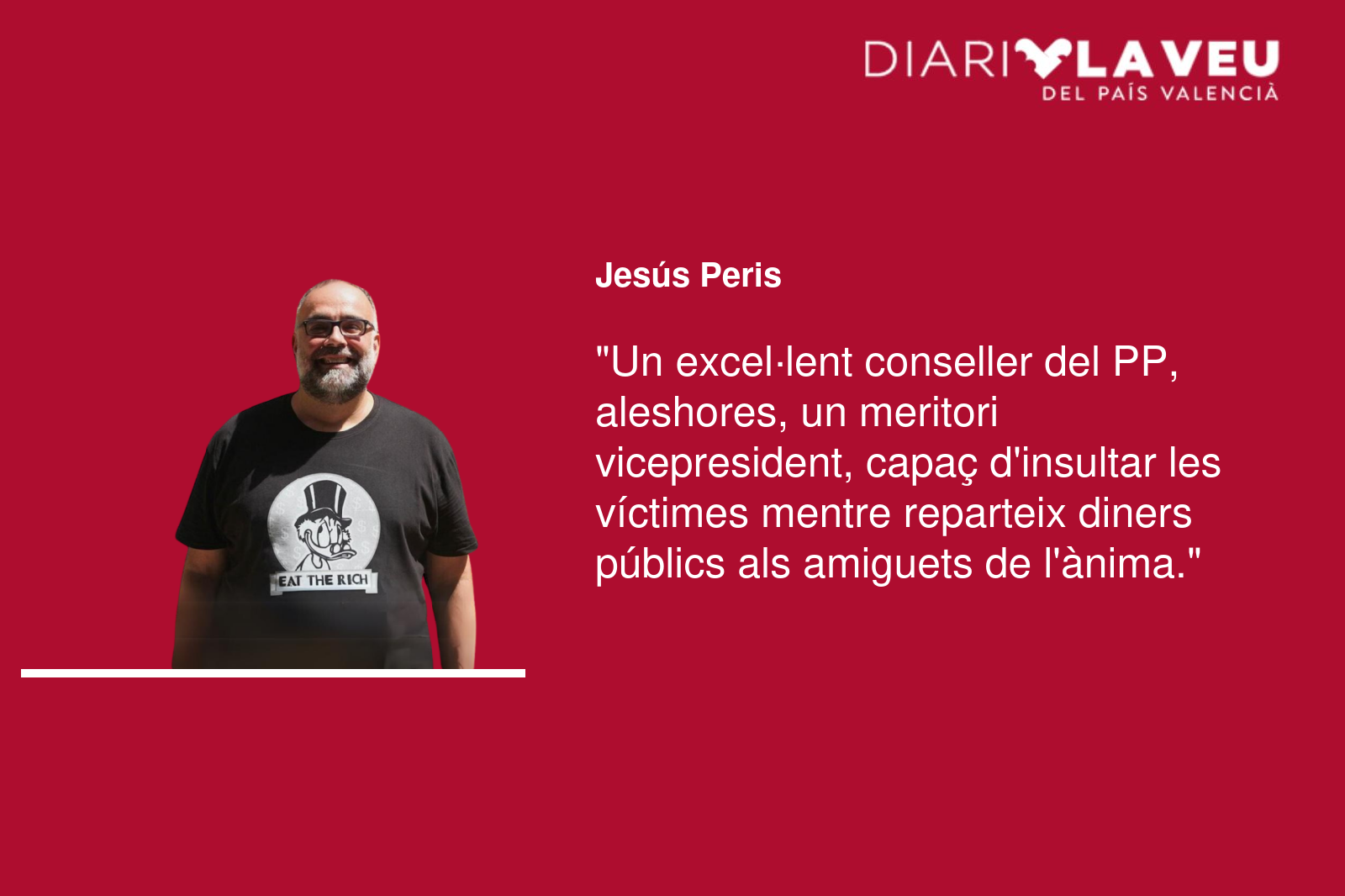 Un excel·lent conseller del PP aleshores, un meritori vicepresident, capaç d’insultar les víctimes mentre reparteix diners públics als amiguets de l’ànima. Sense novetat en el front est, sa majestat. Mentrestant Mazón a la seua marxa, dient que ell sí que es pren seriosament les emergències probablement perquè ja ha quedat clar que no té moral ni escrúpols, potser perquè viu en el seu propi deliri, o potser perquè, des de la torre del seu menyspreu, es creu que som babaus, o potser de tot un poc. Ara quan hi ha una alerta es dediquen a sobreactuar. Ara activen l’ES-Alert amb hores i hores d’antelació sobre l’inici de l’alerta roja. No s’adonen que la seua sobreactuació present no fa més que posar-los en evidència més i més encara perquè fa encara més palés el que no van fer el 29 d’octubre? I el que efectivament van fer, dinar, redinar i ves a saber què, esperant que escampara perquè estàvem en vespres d’un pont? El classisme mata. El negacionisme massa. El superb desconeixement del territori mata. I l’estupidesa també. I quan van units encara més. Què hi ha més perillós que un prepotent imbècil?