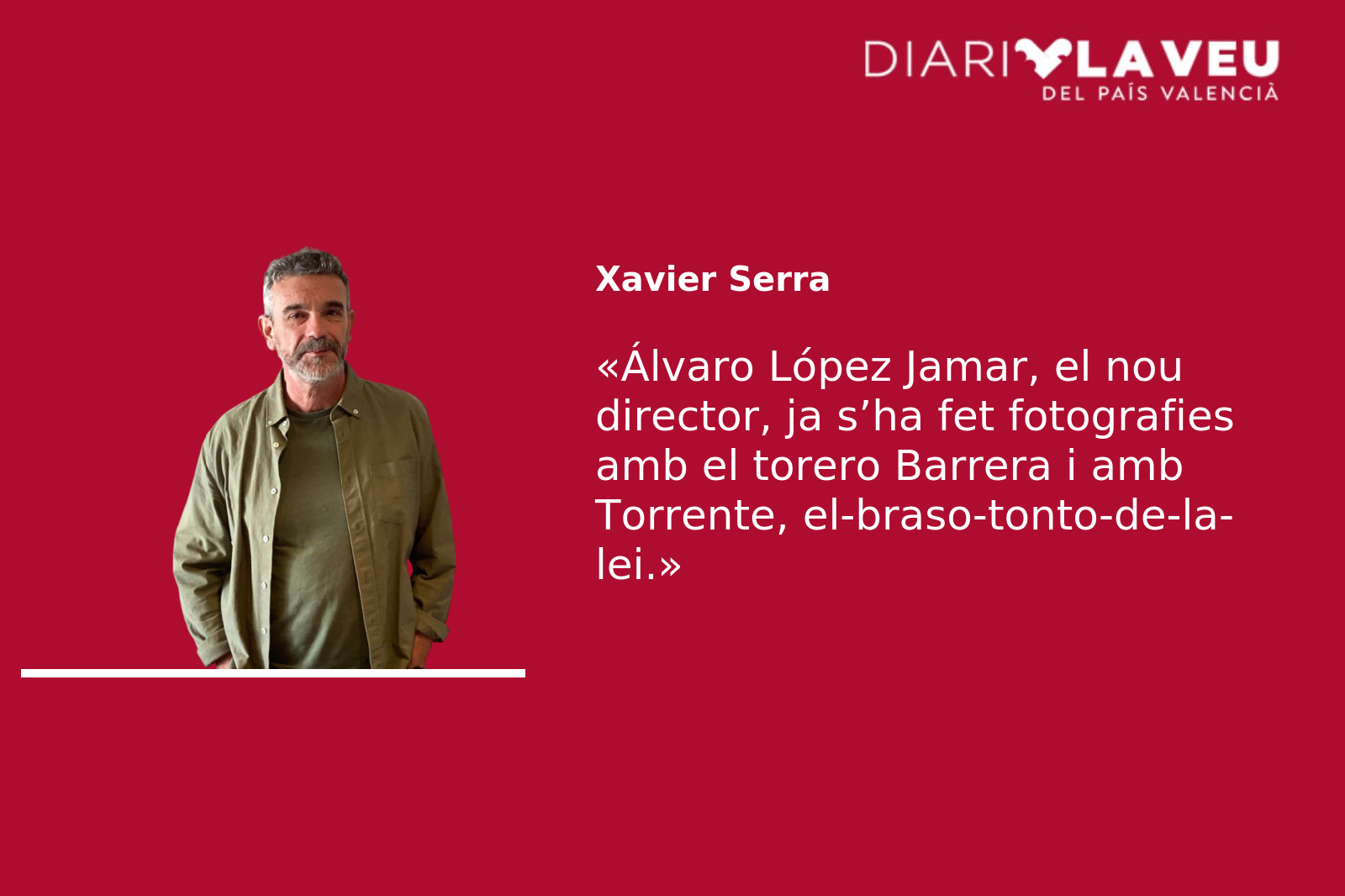 Ara, però, li toca volar més baix. I pot treure’s la màscara. Ja s’ha fet fotografies amb el torero Barrera i amb Torrente, el-braso-tonto-de-la-lei. I no m’estranyaria gens veure’l en la zona vip la nit que Bertín Osborne i els quatre morts vivents que aniran a escoltar-lo omplin d’ombres el jardí de Vivers. Com que no hi ha manera de vendre les entrades, l’alcaldessa de València ja li deu haver enviat la invitació.