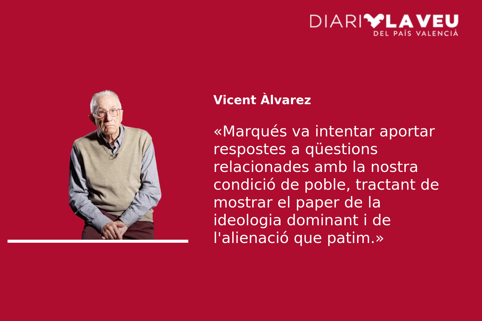 Doncs bé, Marqués va intentar aportar respostes a moltes qüestions que tenien a veure amb la nostra condició de poble, tractant de mostrar el paper de la ideologia dominant i de l’alienació que patim els ciutadans d’un pretés «Llevant feliç».