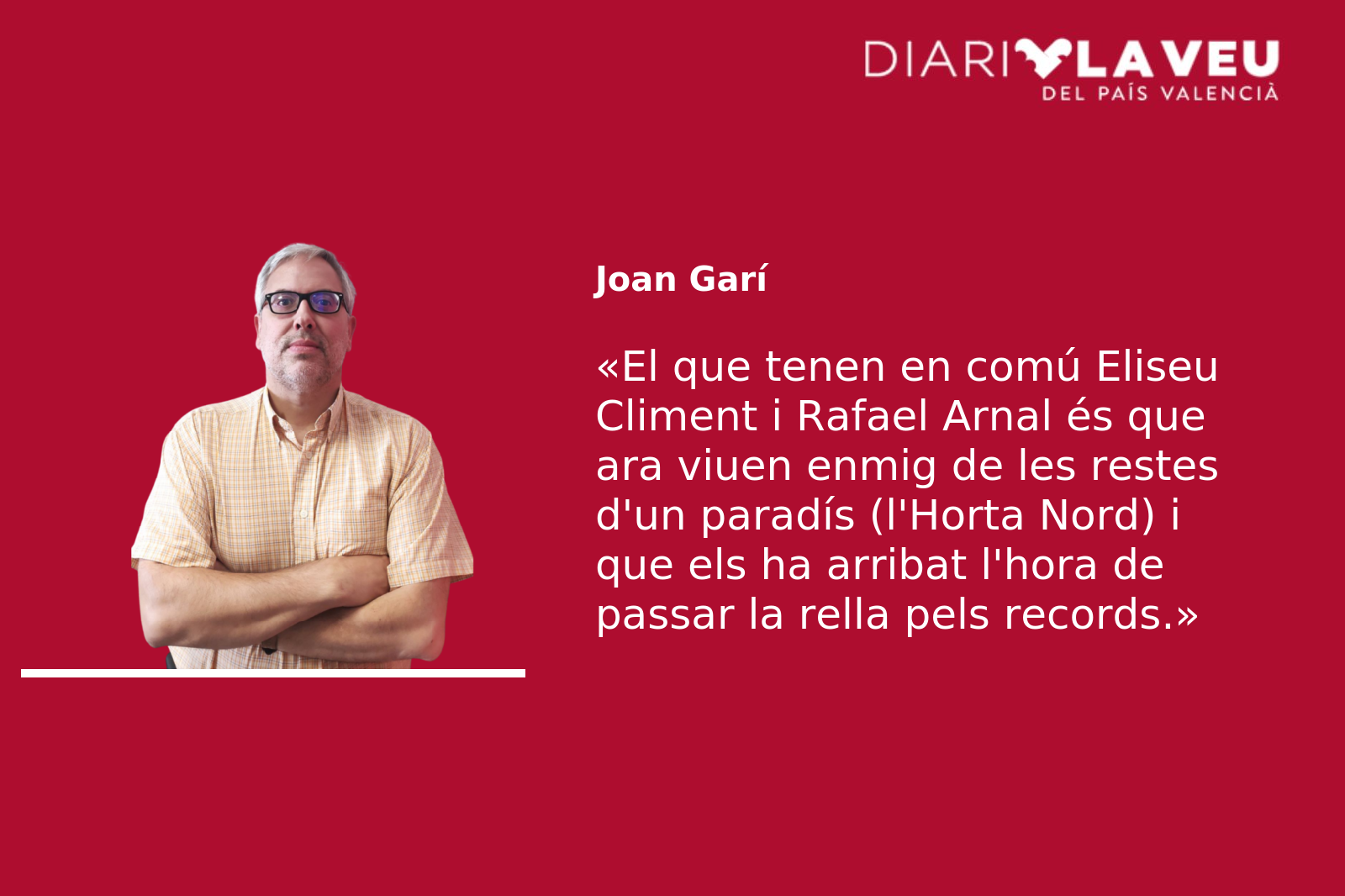 El que tenen en comú Climent i Arnal és que ara viuen enmig de les restes d’un paradís (l’Horta Nord) i que els ha arribat l’hora de passar la rella pels records més personals. Si escriure ajuda a pensar, unes memòries o una autobiografia jerarquitzen allò viscut i organitzen el magma confús dels records. També serveixen per a (auto)justificar-se, però això és un propòsit més va. El que importa no és el que pensa la gent de les coses que et veu fer o dir, sinó la fermesa amb que agafes el timó seguint un rumb clar mentre el vaixell travessa eixes aigües.