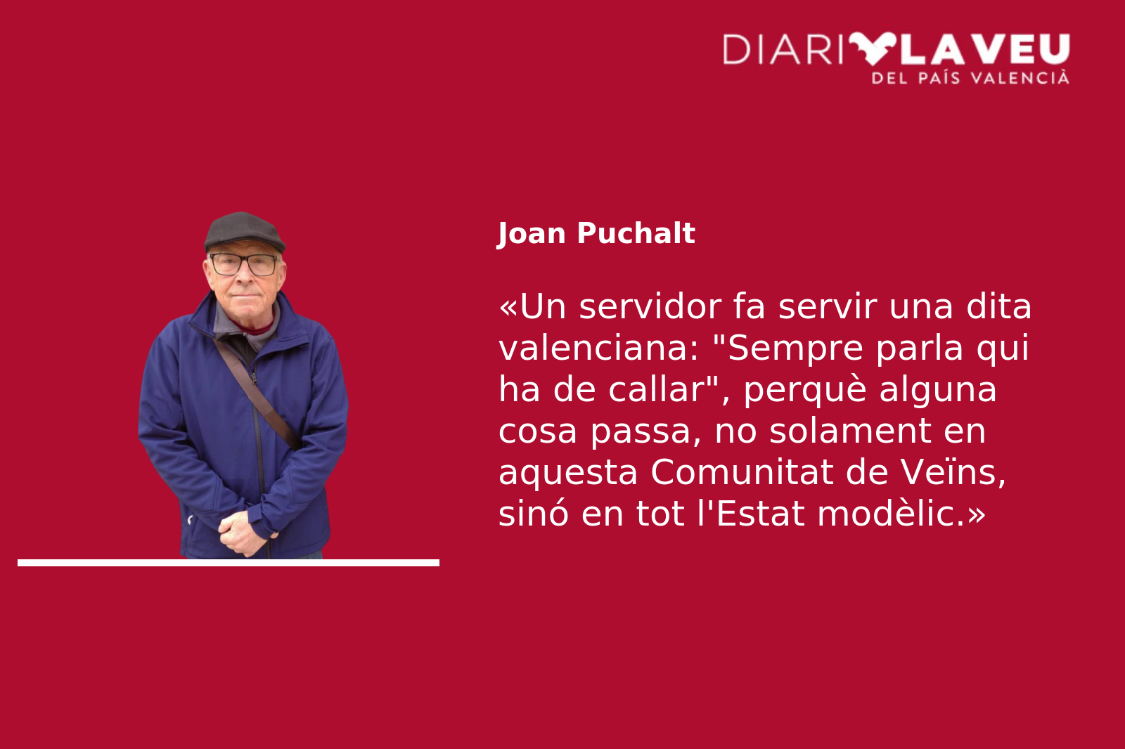Per altra banda, em permet comentar l’editorial del 31 d’agost, signada habitualment per l’editor de Diari La Veu del País Valencià, Moisés Vizcaino Garrido, que ens conta, sota el títol «Qui parla de “turismefòbia”», encertadament, que el vocable de moda ara, sense embussos de cap classe, és un «sainet» perquè és protagonitzat per la consellera Nuria Montes, que ho és també d’Indústria, Comerç i Turisme, procedent de la patronal Hosbec, la mateixa que organitza un acte de desgreuge davant d’allò que consideren un atac contra els interessos empresarials. Convé dir que amb el Consell, encapçalat per Mazón, formen una conjuminació important i perfecta, d’un pes important. I un servidor fa servir una dita valenciana: «Sempre parla qui ha de callar», perquè alguna cosa passa, no solament en aquesta Comunitat de Veïns, sinó en tot l’Estat modèlic, mundialment famós, que a la resta d’Europa no passa, perquè n’hi ha, si fa no fa, una organització més adient, que no en aquest. Per la qual cosa ens ho hauríem de fer mirar.