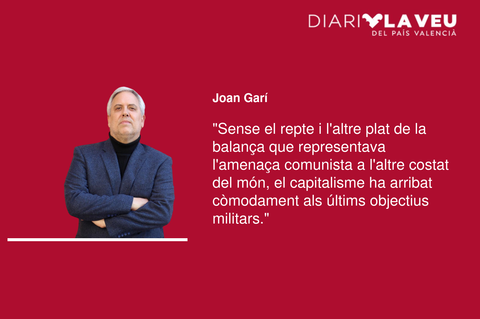 Sense el repte i l’altre plat de la balança que representava l’amenaça comunista a l’altre costat del món, el capitalisme ha arribat còmodament als seus últims objectius militars. Ja no necessita màscares: ni sanitat universal, ni educació pública de qualitat i gratuïta, ni crides al desarmament, ni liberalisme polític ni democràcia burgesa. Desaparegut el monstre comunista oriental –Xina és una altra cosa-, Wall Street no té contrapoder polític i pot imperar a voluntat.