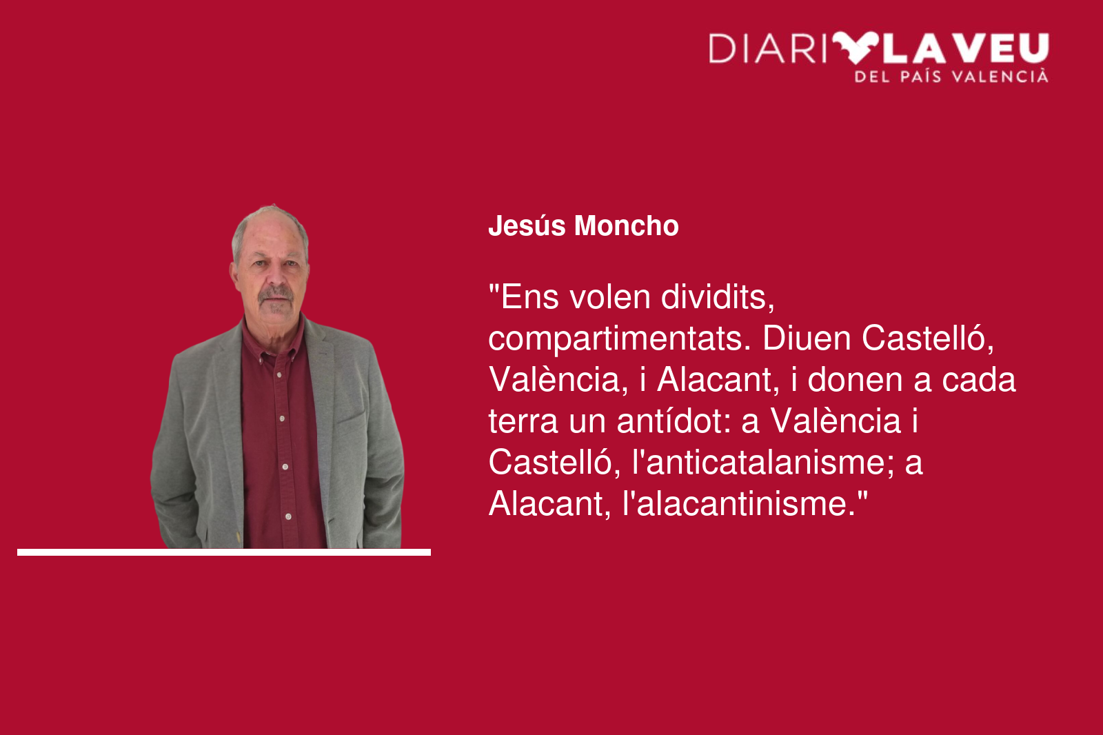 Immediatament vindran les comparacions, que si Lamine Yamal, que si Mbappé, o anem a l’atac, o a gestionar, o a la defensiva… Cadascú ja decidirà, però és convenient que siga en equip, col·lectivament. Les nostres coses s’han de defensar col·lectivament. Ens volen dividits, compartimentats. Diuen Castelló, València, i Alacant, i a cada terra li donen el seu antídot: a València i Castelló, l’anticatalanisme; a Alacant, l’alacantinisme. El resultat i conclusió és que estem dividits, sense la força i ajuda que dona la unió, desmoralitzats, sense capacitat de reclamar res, sense inversions ni infraestructures adients (no connexió ferroviària amb l’aeroport de l’Altet, no tercer ni quart carril del by pass d’Alacant, carretera general dins de ciutat entre l’Esplanada i el Port d’Alacant, el Baix Segura inundable, manca d’aigua per a necessitats, no Corredor Mediterrani ni de passatgers ni de mercaderies, etc.).