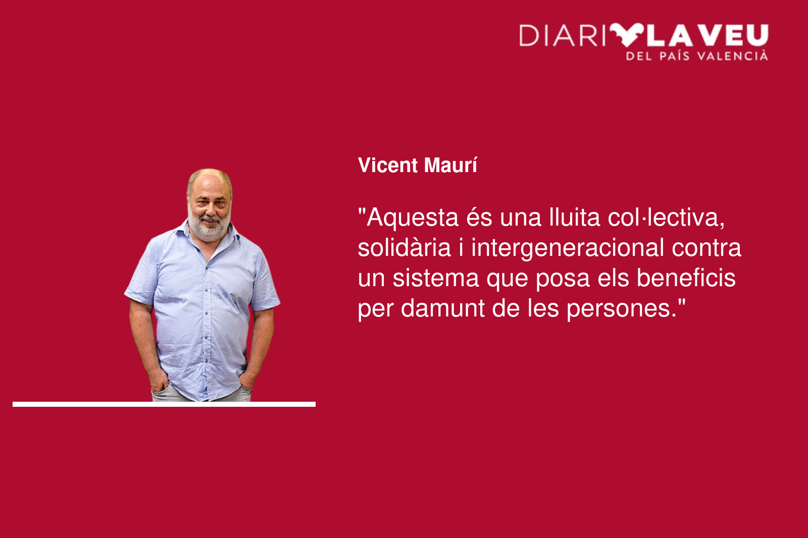 Perquè aquesta és una lluita col·lectiva, solidària i intergeneracional contra un sistema que posa els beneficis per damunt de les persones. Una lluita per la dignitat, la justícia social i la vida, una lluita per garantir que ningú quede enrere i que el futur no estiga segrestat pel capital.