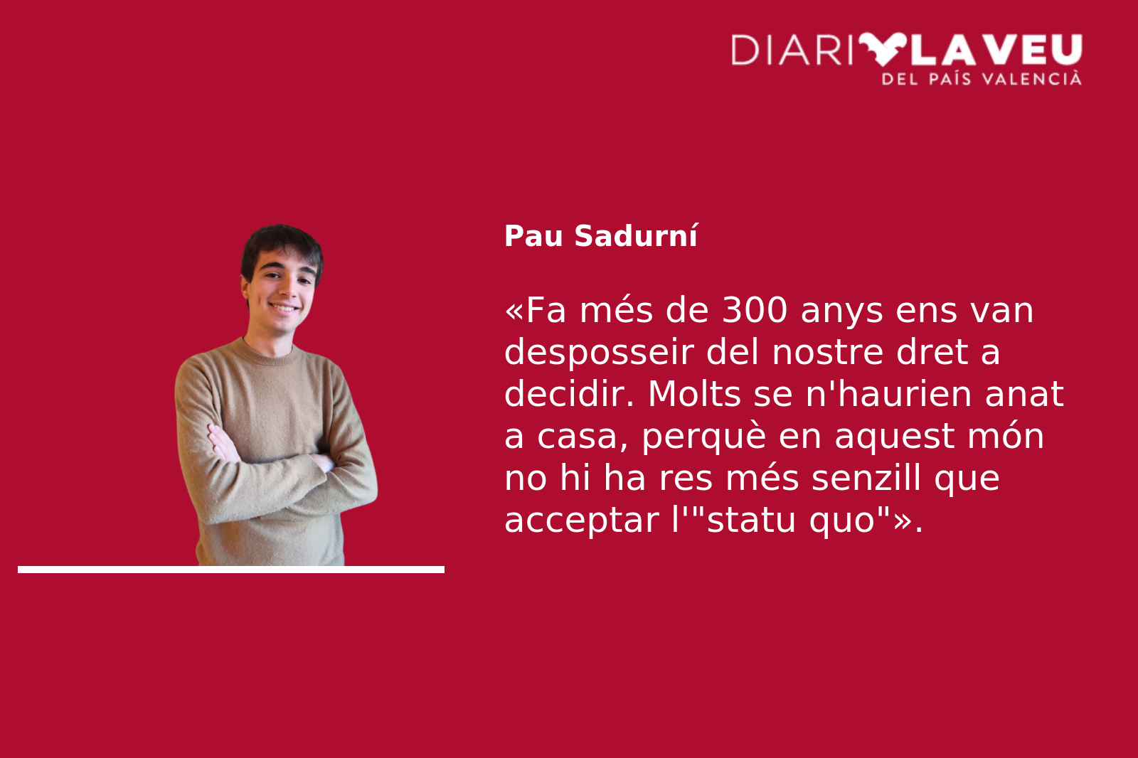 Fa més de 300 anys ens van desposseir del nostre dret a decidir «por justo derecho de conquista». Molts se n’haurien anat a casa, perquè en aquest món no hi ha res més senzill que acceptar l’statu quo. Però els valencians, així com la resta dels Països Catalans, vam decidir plantar-los cara i lluitar pels nostres drets polítics i nacionals tot i el preu que això va tindre, i té: les multes, les persecucions, les tortures, la presó, l’exili i fins i tot la mort.