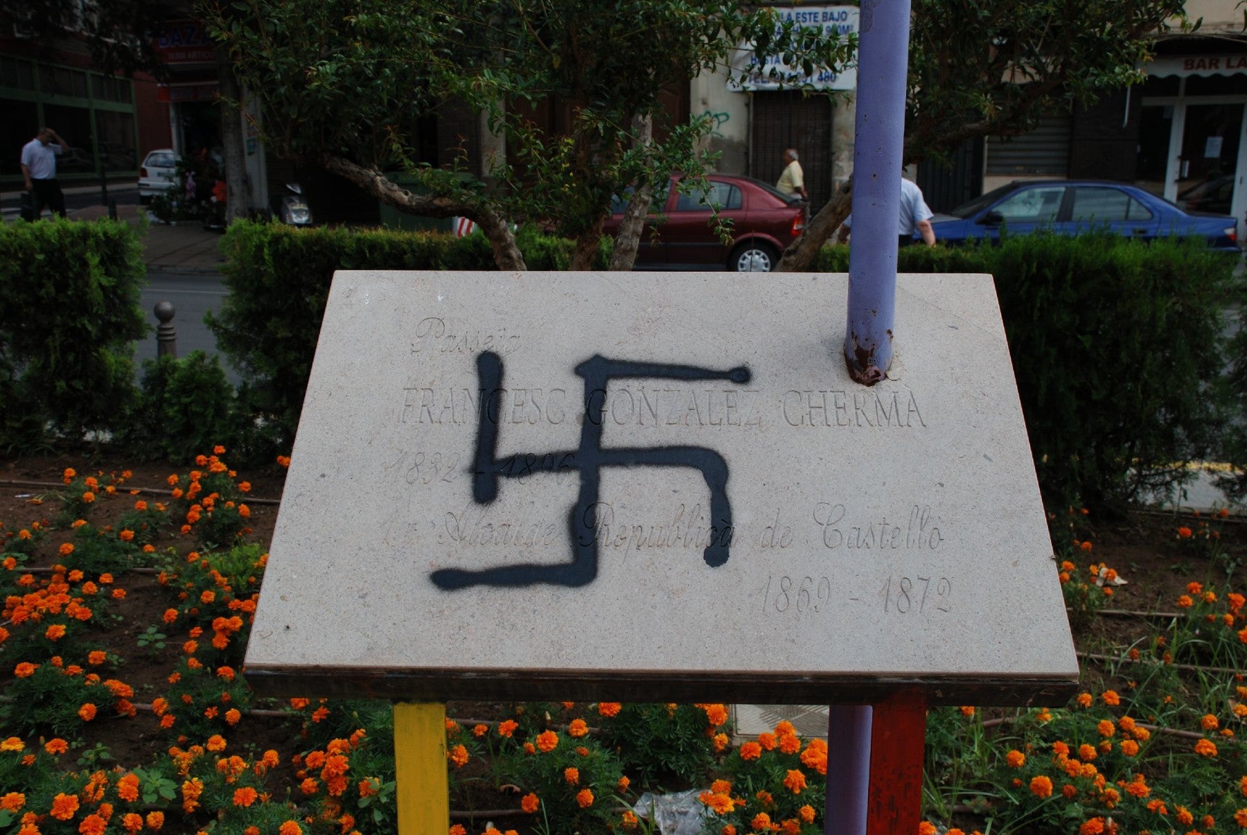 L’homenatge a l’alcalde González Chermà al parc Ribalta també ha estat agredit amb esprai i van pintar una esvàstica. Al cementiri de Benicàssim van trencar la placa en homenatge als brigadistes que van participar en la Guerra Civil.