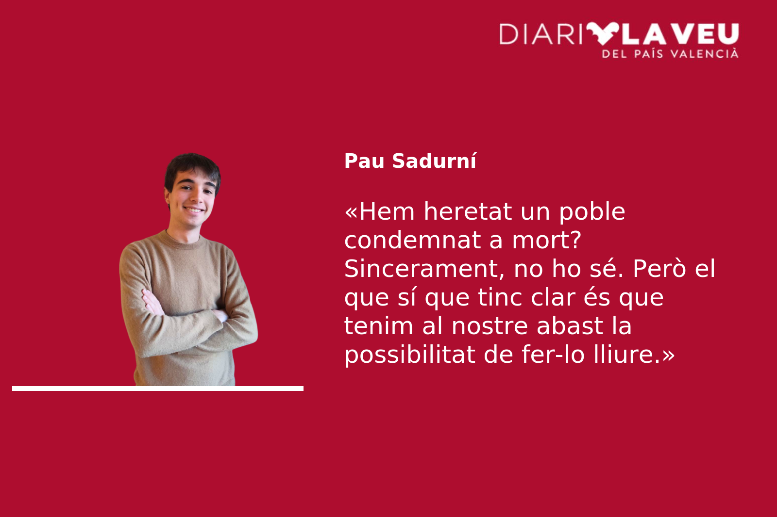 Hem heretat un poble condemnat a mort? Sincerament, no ho sé. Però el que sí que tinc clar és que tenim al nostre abast la possibilitat de fer-lo lliure, i això ja és una gran sort de la qual no tots els pobles poden gaudir. Per molt que ens puga pesar, la història ha reservat un paper transcendental a la nostra generació.