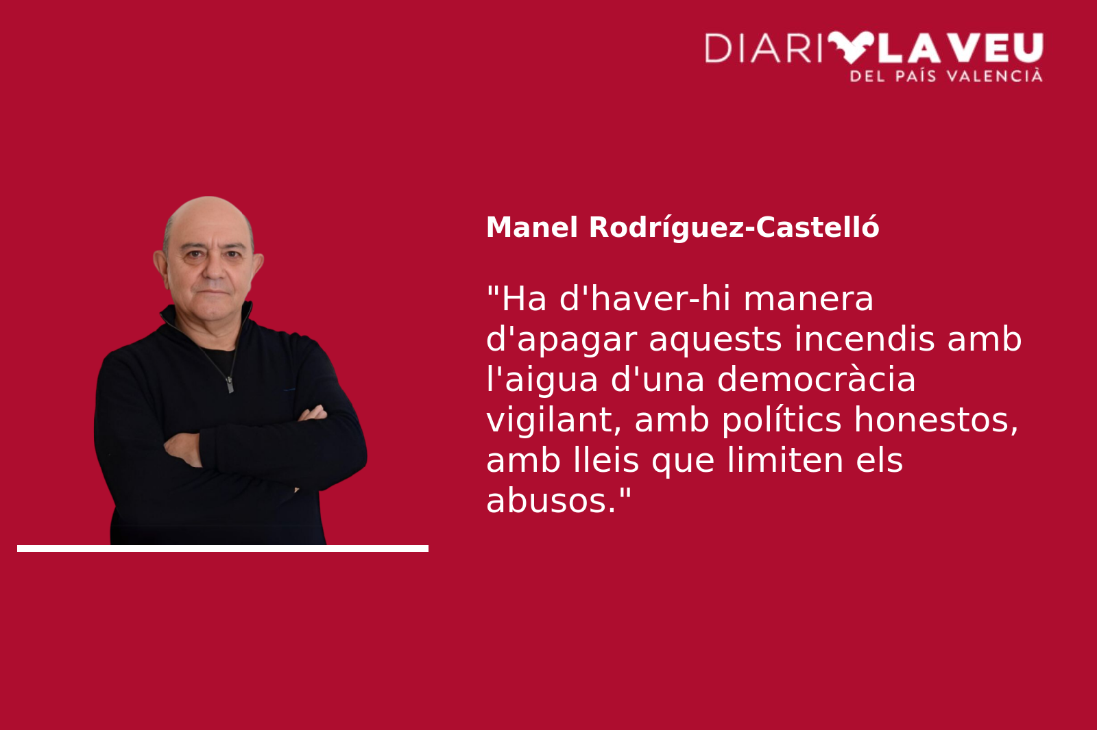 Puja la temperatura planetària i ens situa a les portes d’una deflagració mundial amb piròmans de la talla de Trump, Putin o Netanyahu, per no fer el llistat més llarg. Els casos que ara cremen a la política marilenya, que inevitablement ens sufoquen a tots per contaminació mediàtica, tornen a posar un dels grans partits espanyols, el PSOE, contra les cordes, amb serioses conseqüències per a la mala salut de ferro de la democràcia espanyola. Els Ábalos, Santos i Koldos, la reiterada i vomitiva roda dels corruptes (i les empreses corruptores perpètuament movent-la a l’ombra), ens tornen a posar davant l’evidència del gran bunyol espanyol i l’esgotament irreversible del règim nascut en 1978 en forma d’opereta bufa, tediosa, malparlada i desesperant. Si la cridòria i la pujada general de temperatures de la política espanyola ja era insuportable i insostenible (així la qualifica encertadament Salvador Cardús en l’últim article) gràcies als mèrits d’una dreta de matriu franquista que no té més projecte que el domini autoritari, els negocis privats i la dissolució de llengües i nacions sota l’ègida imperial, els socialistes enfangats fins a les celles en el negoci de la corrupció han convertit la capital del regne en més infern encara. Ha d’haver-hi manera d’apagar aquests incendis amb l’aigua d’una democràcia vigilant, amb polítics honestos, amb lleis que limiten els abusos, la compra de voluntats i les actuacions partidistes d’una justícia que ha perdut en la defensa a ultrança dels privilegis de la minoria que controla el poder de l’estat tota credibilitat. La política mateixa està sota sospita quan comprovem una vegada més que els dos guardians principals del règim pixen pel mateix camal i naveguen en idèntica merda. I en el terreny de l’antipolítica ja sabem qui té les de guanyar sempre amb la seua retòrica tan inflamada com buida d’alternatives per a la immensa majoria de la població: les hosts feixistes es freguen les mans en cada incendi. La necessària regeneració, doncs, no vindrà de la mà dels mateixos que es munten els negocis a l’ombra dels despatxos i els escons, sinó a partir d’una sacsejada democràtica i republicana des de baix capaç de fer foc nou i escombrar tanta podridura. Mentrestant, no hi ha més remei que aguantar la xafogor i preparar-se per al que només és l’inici d’un cicle d’extremituds climàtiques demencial. La distància respecte dels focus més incandescents no pot oferir cap protecció atès que al País Valencià també patim els nostres propis incendis, sobretot a l’estiu, quan no són estranyes les calorades que cremen al ponent mediterrani. Enlaireu senyeres i ventalls!