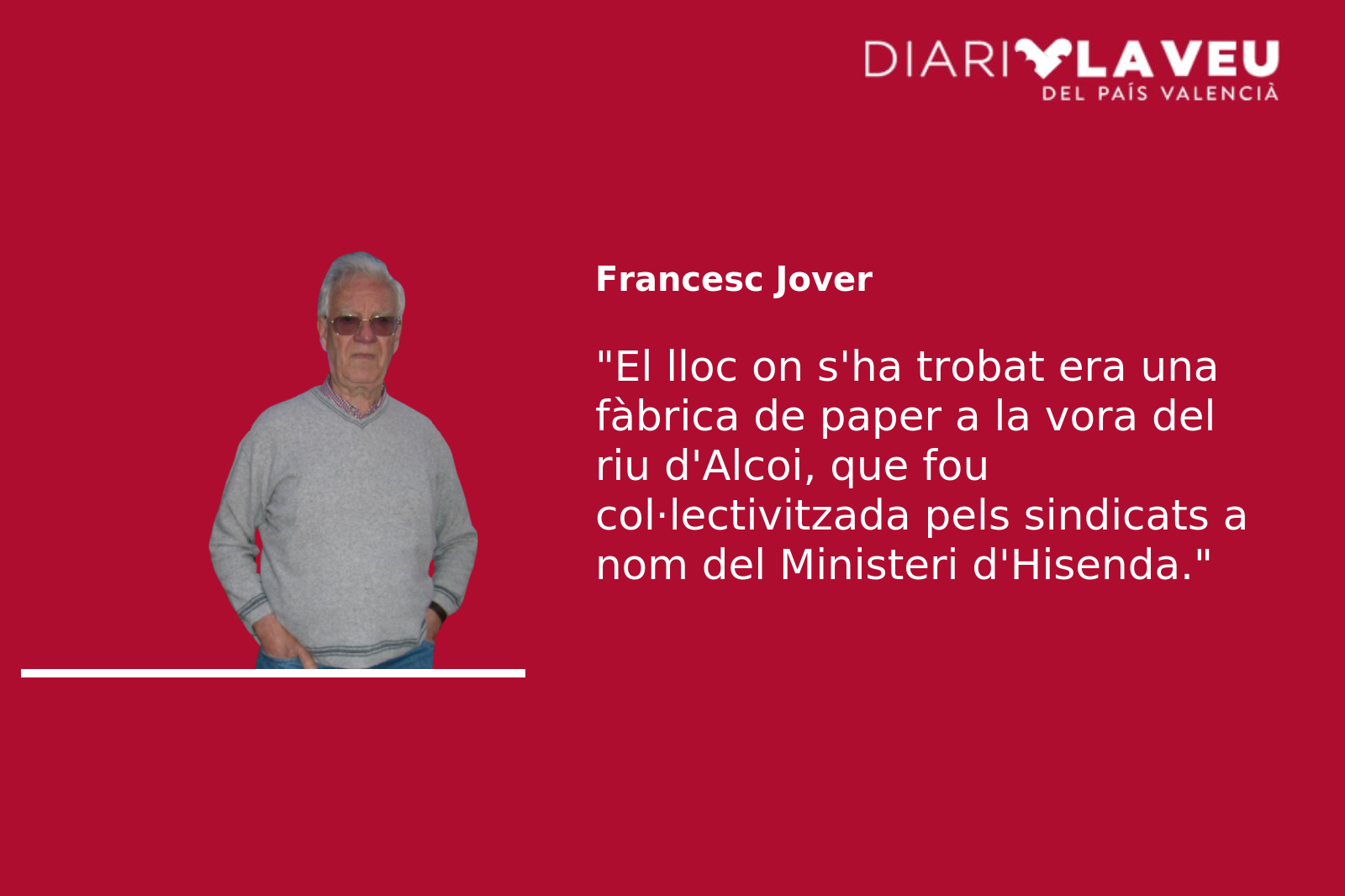 Per què està allí? El lloc on s’ha trobat era una fàbrica de paper a la vora del riu d’Alcoi, fàbrica que fou col·lectivitzada pels sindicats a nom del Ministeri d’Hisenda. Uns amples magatzems adherents a la indústria de paper, on la República va instal·lar el CRIM núm. 10 (Centre de Reclutament Instrucció i Mobilització), pertanyent al destacament militar d’Alcoi. Vol dir que va estar ocupat mentre va durar la guerra per oficials, soldats i comissaris; persones heterogènies que tenien els seus oficis. Naturalment, en aquests col·lectius sempre hi ha algun membre erudit, pintor, etc., que, responent a les consignes oficials i deixa constància del que sap fer. Estime que és un testimoni colpidor que s’afegís al patrimoni cultural i històric que enriqueix la nostra diversa societat.