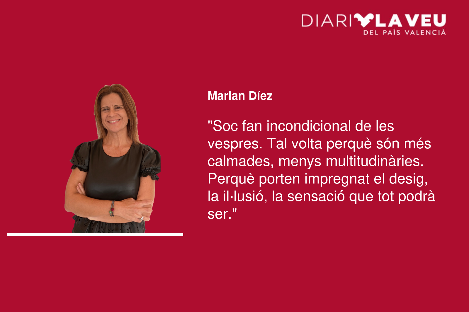 Les vespres tenen adherida eixa fascinació que fa olor de vermuts, de retrobaments desitjats, de sobretaules eternes, de pólvora o encens, segons la temporada, de tradicions o de revolucions. Tot té cabuda en les vespres. Són com la intensitat del primer, del segon o de l’últim amor encara que després, la festa, vinga carregada d’ingratitud i ens deixe transitant pel desconsol de manera sobtada.