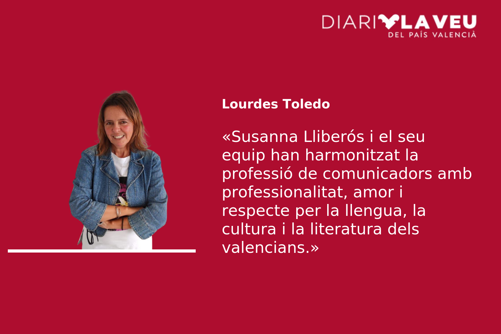 Durant la nostra conversa vaig percebre en ella un possible gir personal i professional. Lliberós sospitava que el programa entrava en una fase fràgil, de possible desaparició. No obstant això, no esperava que fos tan ràpid i fulminant, però així funciona el tàndem PP-Vox, a base de punyà a la taula o més bé de desmuntar tros a tros, pas a pas, el precari edifici de la nostra cultura i ecosistema comunicatiu. Tanmateix, serena i sincera com és ella, em comentava: «Potser estic en un moment de plantejar-me les coses que vull fer, si continuar per ací o voldria un canvi. La feina l’has de fer amb alegria i sinceritat, i si notes que no ho pots tindre al cent per cent aleshores et demanes si paga la pena. Però pense molt en el meu equip actual, el millor que mai he tingut, i en la gent que passa pel programa i això m’esperona. En tot cas, aquesta sensació d’incertesa que em ve de tant en tant és també un regal que agraïsc perquè em fa posar-me les piles, no perquè siga ingènua, sinó perquè m’ajuda a valorar què és el més important a la meua vida».
