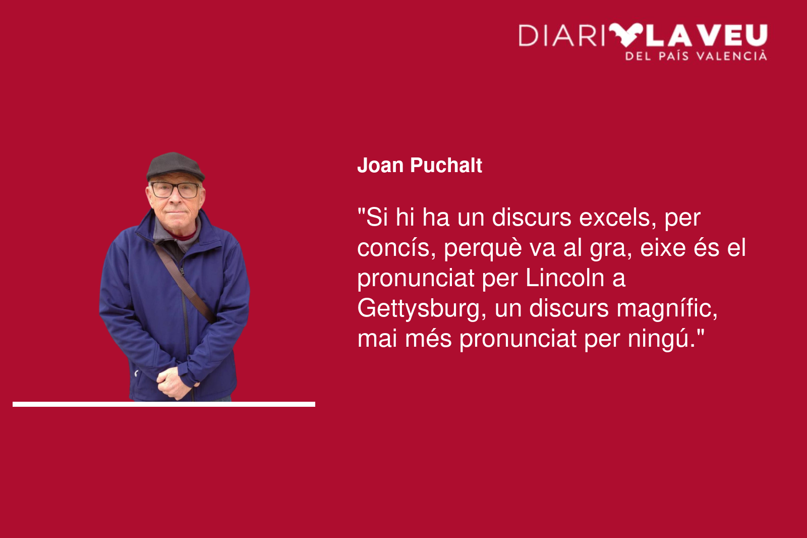 Si hi ha un discurs excels, per concís, perquè va al gra, eixe és el pronunciat per Lincoln a Gettysburg, un discurs magnífic, mai més pronunciat per ningú, quan cent setanta mil homes lluitaren, morint-ne set mil. Algú va dir poc després de l’assassinat de Lincoln que seria recordat quan la batalla fos oblidada gràcies al discurs; no obstant això, els que el varen precedir en l’ús de la paraula tardaren deu i ajuda en el seu ús de la paraula i el meritat Lincoln només usà dos minuts.