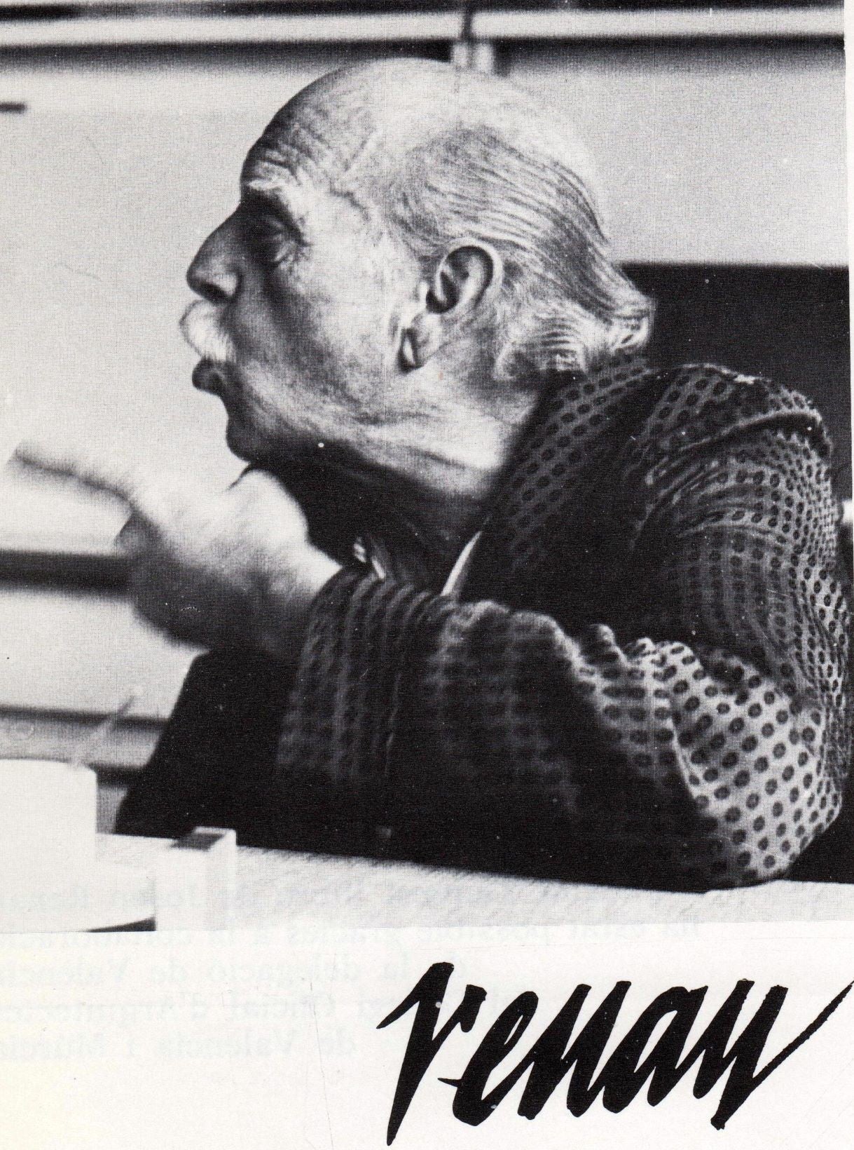 Renau forma part d’aquella gran fornada d’artistes, escriptors i intel·lectuals dels anys 20 i 30 dels quals quedàrem orfes per la dictadura franquista en ser derrotada la República per les armes. Vull recalcar que fou per les armes i no per les urnes com en democràcia hagués sigut el correcte. El guanyador d’una guerra mai no és per la voluntat del poble, si no pel suport internacional que facilita més i millors armes. Per altra banda, vull dir i destacar una volta més, l’immens i llarg buit i desolació intel·lectual que va deixar la Guerra Civil.