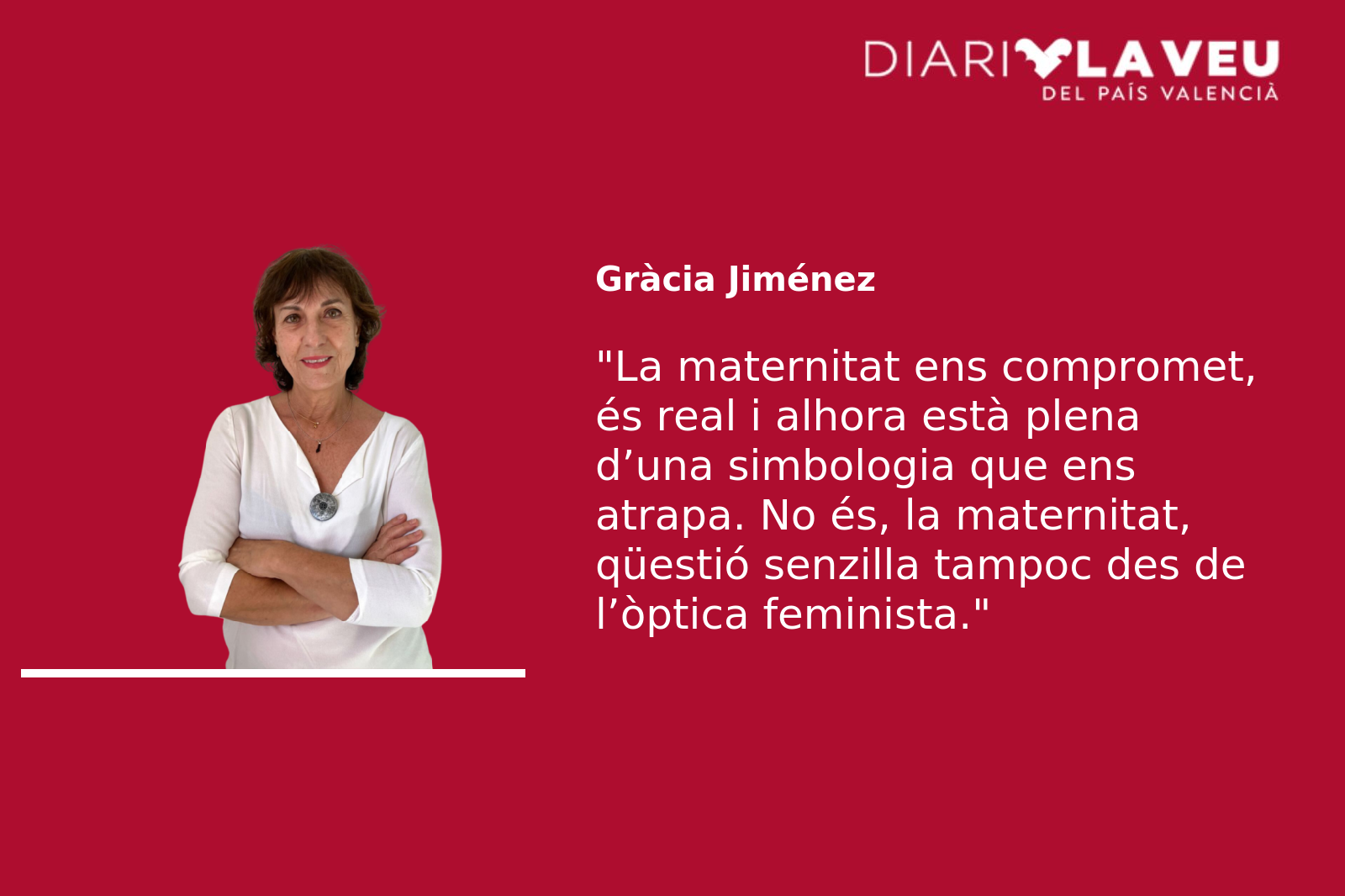 Ara per ara, les dones a més de la concepció, gestació, part i lactància portem el major pes de la criança, una càrrega invisible i un treball físic que no és reconegut socialment. La maternitat ens compromet, és real i alhora està plena d’una simbologia que ens atrapa. No és, la maternitat, qüestió senzilla tampoc des de l’òptica feminista. Ens haurem de preguntar si el desig de ser mare està vinculat a l’essència de ser dona, a l’instint, o si és una construcció dins les històries vitals de cadascuna de nosaltres dins un marc de relacions familiars i socials. En tot cas hauria de ser una elecció lliure i feliç. I és una condició que fa que, en el temps vital de les dones, existisca un abans i un després de ser mare. Tot queda obert!