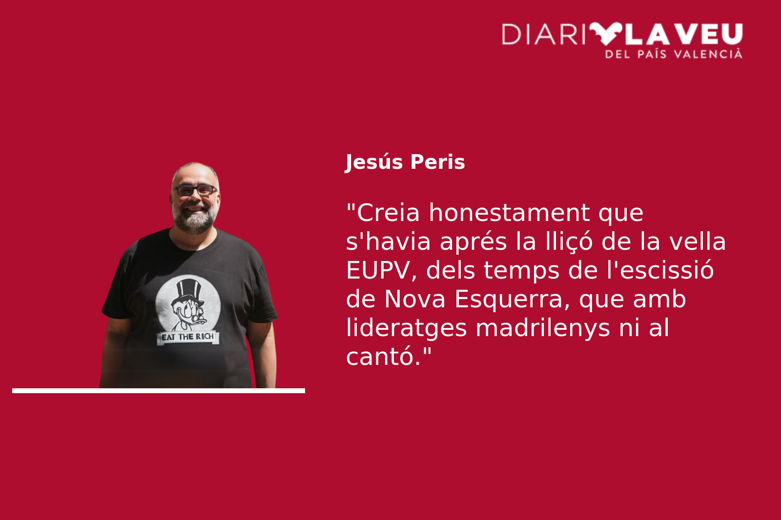 Moltes vegades he dit en privat i en públic que em considere massa d’esquerres per al Bloc però massa valencianista per a Iniciativa. Arribat el moment, però, per trajectòria personal (jo vaig estar de jovenet a Esquerra i País) i per una qüestió de prioritats vaig tindre clar que el meu lloc estava a Iniciativa. Per això i perquè creia honestament que s’havia aprés la lliçó de la vella EUPV, dels temps de l’escissió de Nova Esquerra, que amb lideratges madrilenys ni al cantó, que la politiqueta de la cort és tòxica i acaba amb tot el que es construeix des d’ací. I que el federalisme només es pot construir des de la perifèria. Perquè pensava, honestament ho pensava, que Iniciativa no era un orfe provincià cercant un amo. I no, no pot ser que tot a Iniciativa siga això, que siga només això. Però eixa unanimitat sobreactuada, encara que siga un gest tàctic, fa mal, perquè no deixa escletxes, perquè em deixa fora de qualsevol representació en els òrgans on es prenen les decisions, perquè em distancia no sé si de manera irreversible: a mi i als qui pensen com jo que una esquerra no sucursalista és necessària en aquest País. Per als qui pensem -pensàvem?- que eixa esquerra no sucursalista, eixa esquerra amb els peus i el cap en la nostra terra, era Iniciativa.