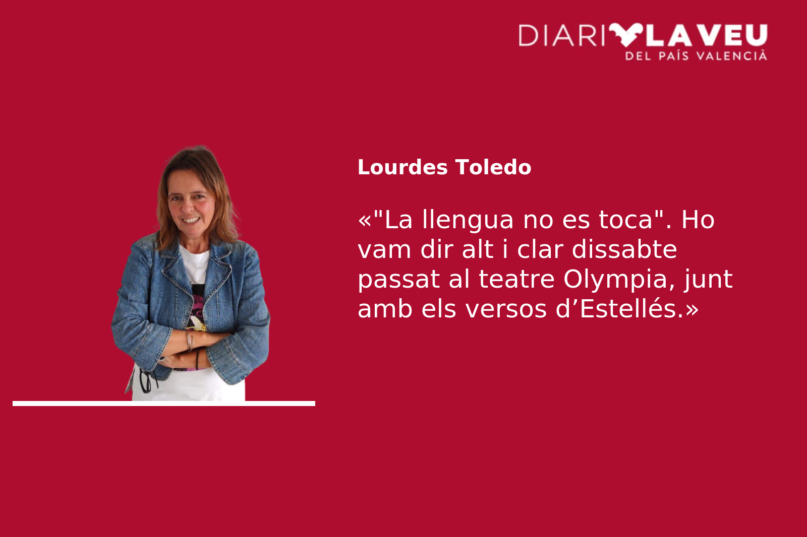 No ens toqueu la llengua! Per dir-ho fi, per no dir-los «no ens toqueu els collons» o «no ens toqueu la figa» perquè ausades que fan nosa, molesten, pertorben, en breu, fan mal i vergonya, i voldran fer-ne molt més. «La llengua no es toca». Ho vam dir alt i clar dissabte passat al teatre Olympia, junt amb els versos d’Estellés, memòria que ens bressola i acompanya, consol i esperança davant de tanta desfeta. Ho vam cridar hores més tard als carrers de la València, i ho tornarem a dir alt i clar: «La llengua no es toca».