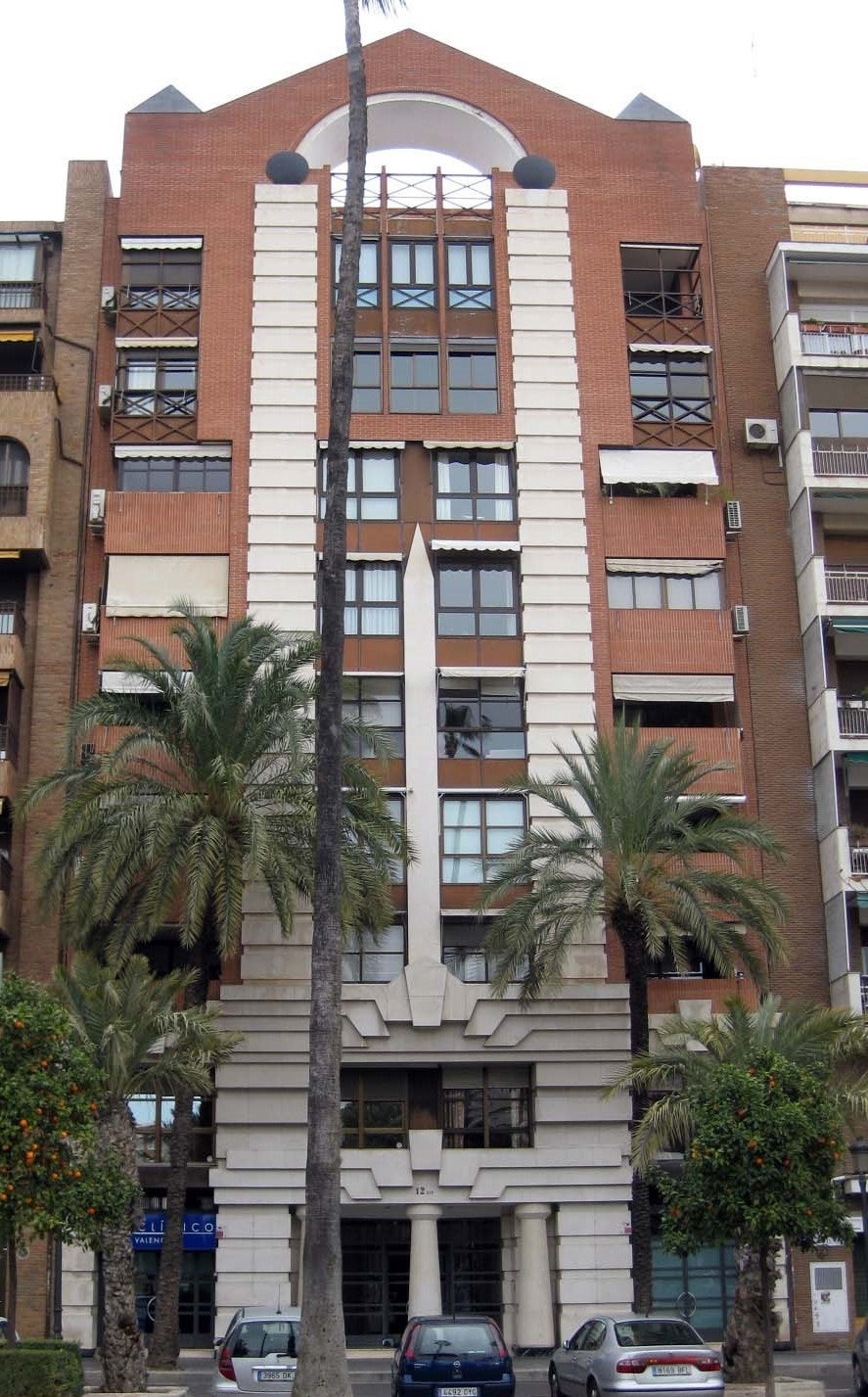 Millor o pitjor, aquesta era una solució. La Guild House va ensenyar-nos una altra opció: es tractava de no solucionar el problema i alhora passar per enginyosos. Es tractava de posar en qüestió qualsevol solució racional sense comprometre’s amb una alternativa coherent, de fer faltes d’ortografia i vantar-se’n. Tot s’hi val perquè res no val. A partir d’aleshores, els arquitectes van descarregar la consciència del llast de la cultura. A partir d’aleshores, els arquitectes es presentaren com a transgressors, feien un guiño a la història —com solien dir— i adoptaren la pose d’un personatge culte que està de tornada de tot. La lliçó de Venturi va arribar a València als anys vuitanta del segle XX. Al número 12bis de l’Albereda de València tenim un bon exemple del que es va anomenar postmodernisme arquitectònic: