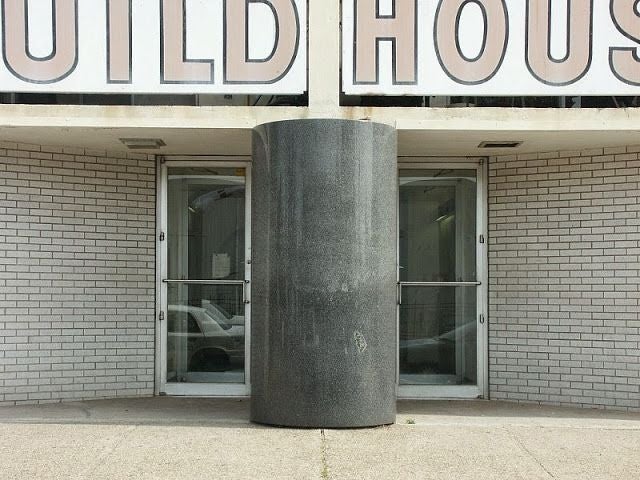 Tothom pot coincidir en la raonable opinió que un pilar no hauria de situar-se davant d’una porta, perquè n’impedeix el pas, o l’obstaculitza, o almenys desvia la circulació del seu recorregut «natural». Però la il·lusió del consens desapareix aviat, com va demostrar Robert Venturi en la Guild House, que comentàrem en un article anterior. Aleshores parlàvem de l’escultòrica antena de televisió que corona la façana principal, de com altera la jerarquia funcional en relació amb la resta d’elements en joc i emfasitza un eix de simetria, tot això per gust de contradir el moviment modern racionalista: