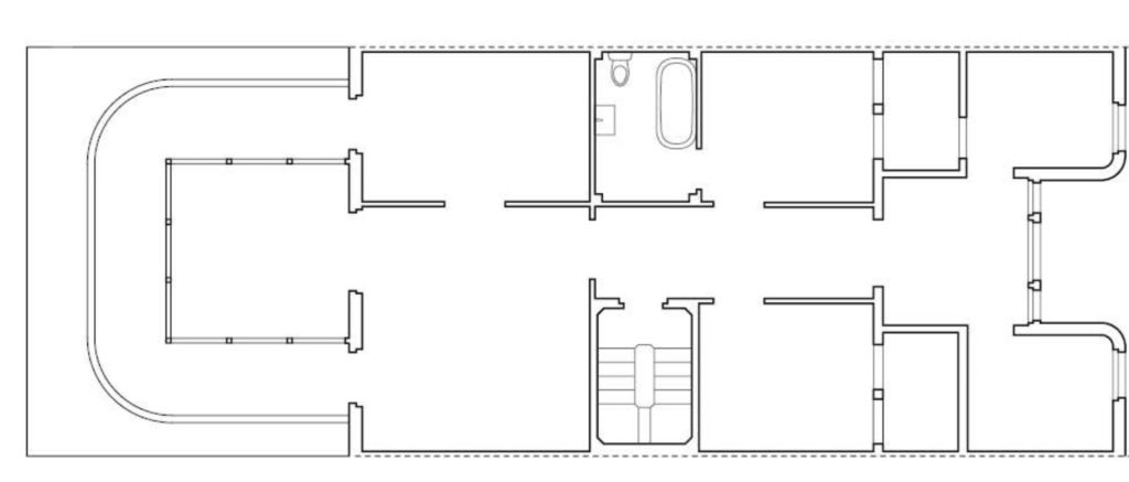Encara que aquest mirador s’integra perfectament en l’esquema ortogonal d’aquesta casa de Jujol, la seua posició en relació amb l’alineació del xamfrà altera completament la percepció que en tenim. És molt clar que veiem el mirador girat 45 graus respecte a la façana del xamfrà, la de l’entrada a la casa, de manera que una de les arestes del volum del mirador es projecta cap a enfora amb una certa acritud. De nou els nyervis de Jujol li van jugar una mala passada. El sistema nerviós de Ribes, molt més temperat, és insensible a aquestes excitacions.
