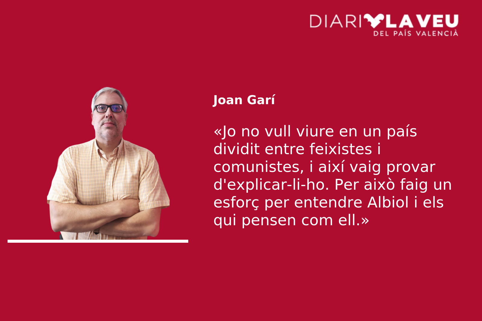 Però és un fet que no cal aspirar només a sobreviure: cal aspirar a viure. Plenament, dolorosament –si cal- i civilitzadament. Per això la meua necessitat d’aprehendre Albiol i els qui pensen com ell.