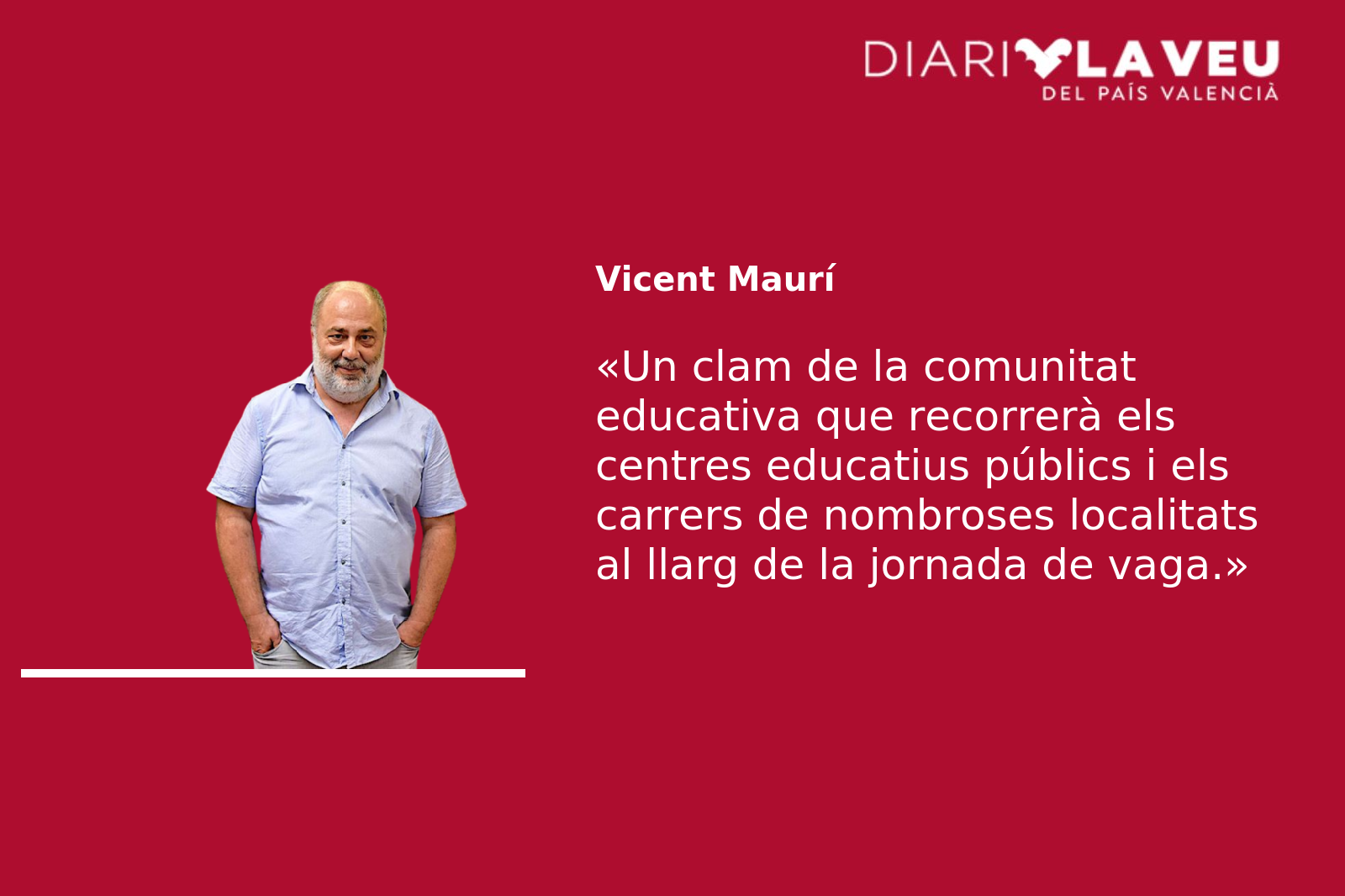 En aquest context, la convocatòria de vaga educativa per al proper 23 de maig és justa i necessària per plantar cara, frenar la involució educativa i passar a l’ofensiva en la defensa de l’escola pública, els drets laborals i el valencià com a llengua vehicular del sistema educatiu. Una convocatòria molt encertada que té el suport dels sindicats STEPV-Intersindical Valenciana, CCOO Educació, UGT Ensenyament i CGT, així com les associacions de pares i mares de l’alumnat, el sindicalisme estudiantil, les associacions en defensa de la llengua o entitats socials valencianes de tot tipus.